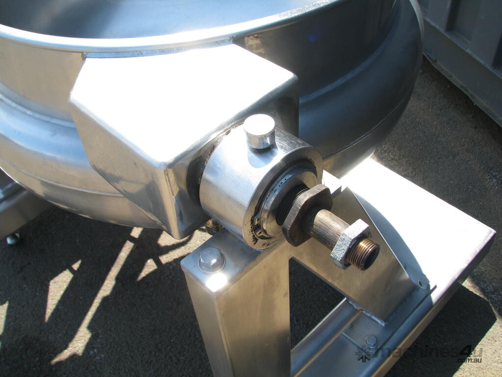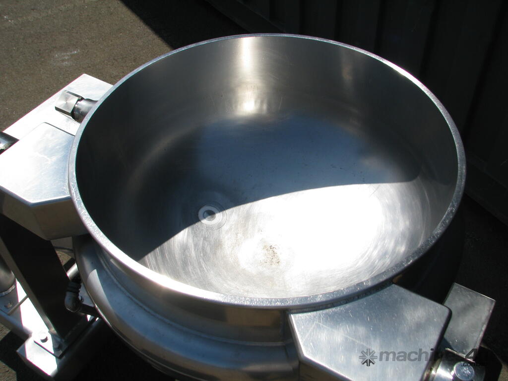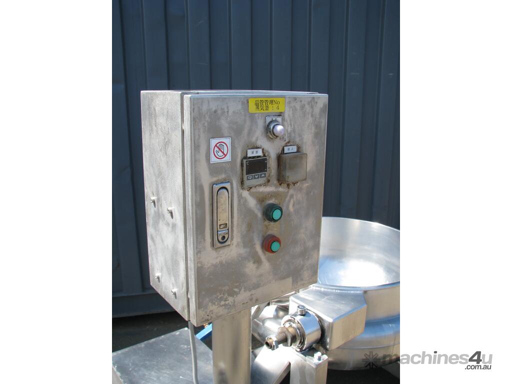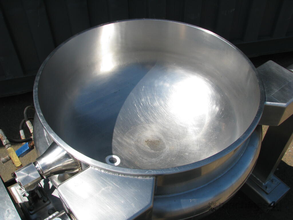 The bowl is jacketed and can hydraulically tilt to tip contents.