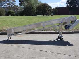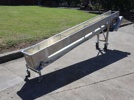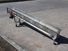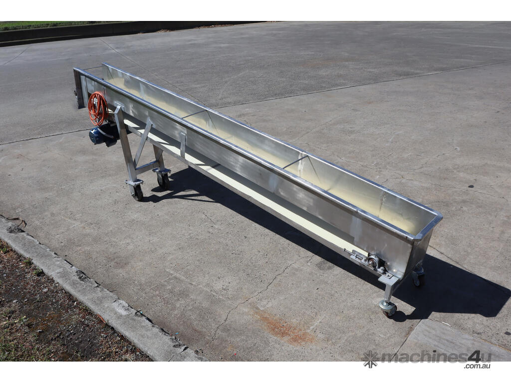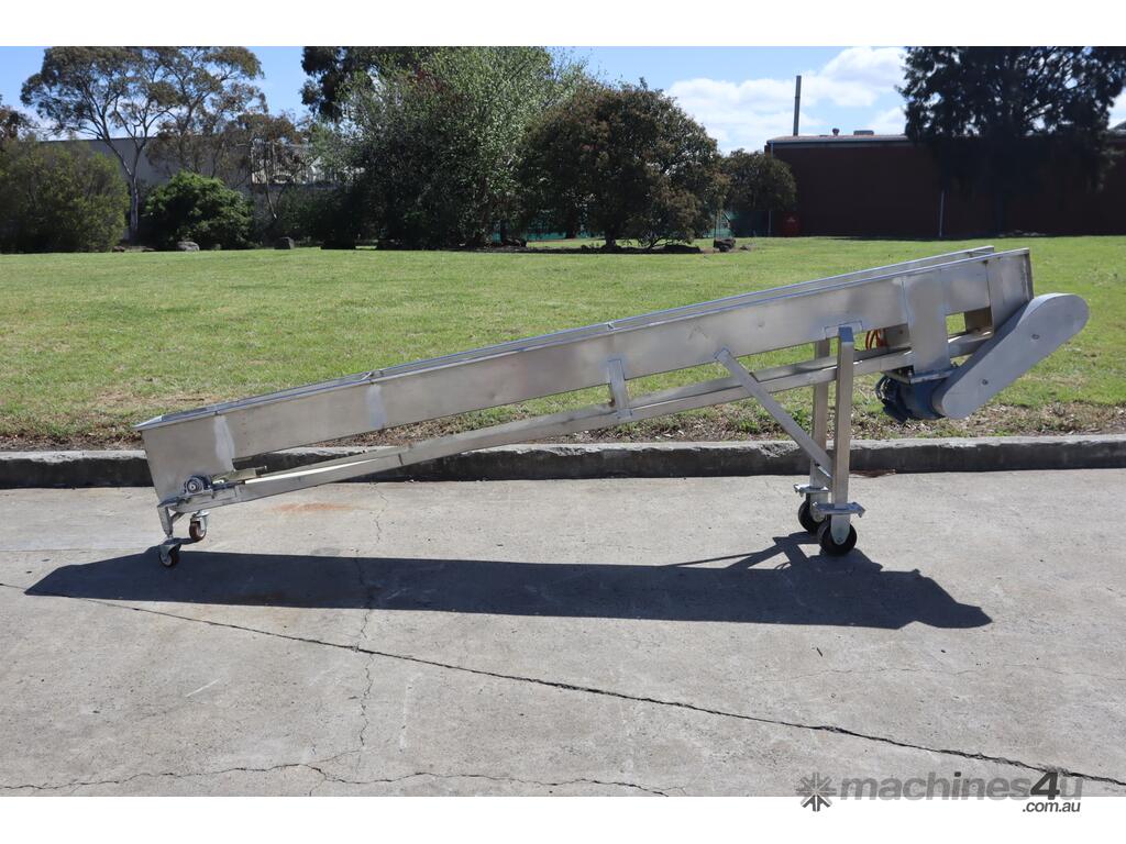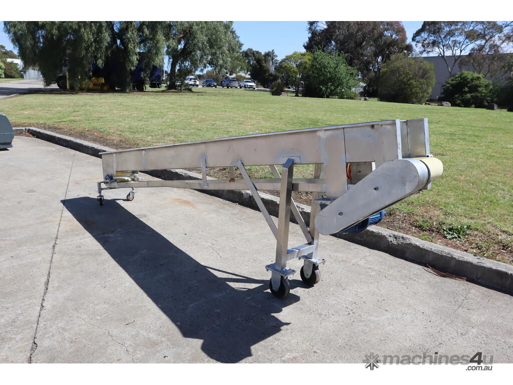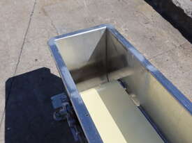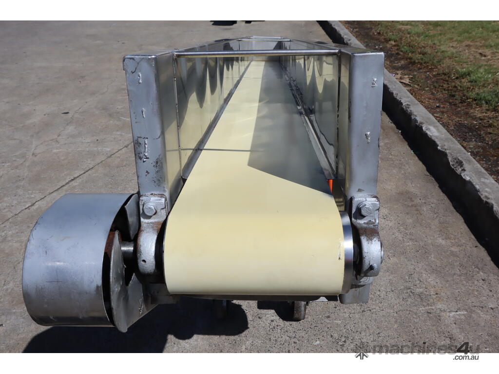 Stainless steel incline conveyor in great condition, suited for smooth and gradual elevating of product between processing stages. Features a hygienic design with smooth, easy to clean surfaces and a food-grade belt. Compact footprint and stable frame make it suitable for tight production layouts.