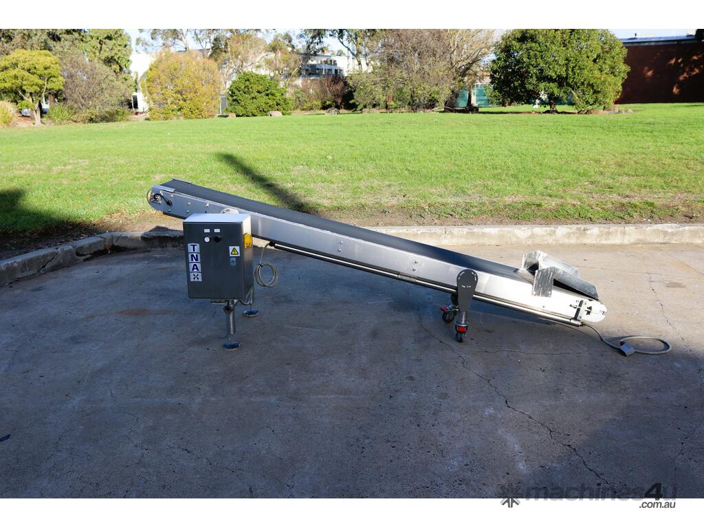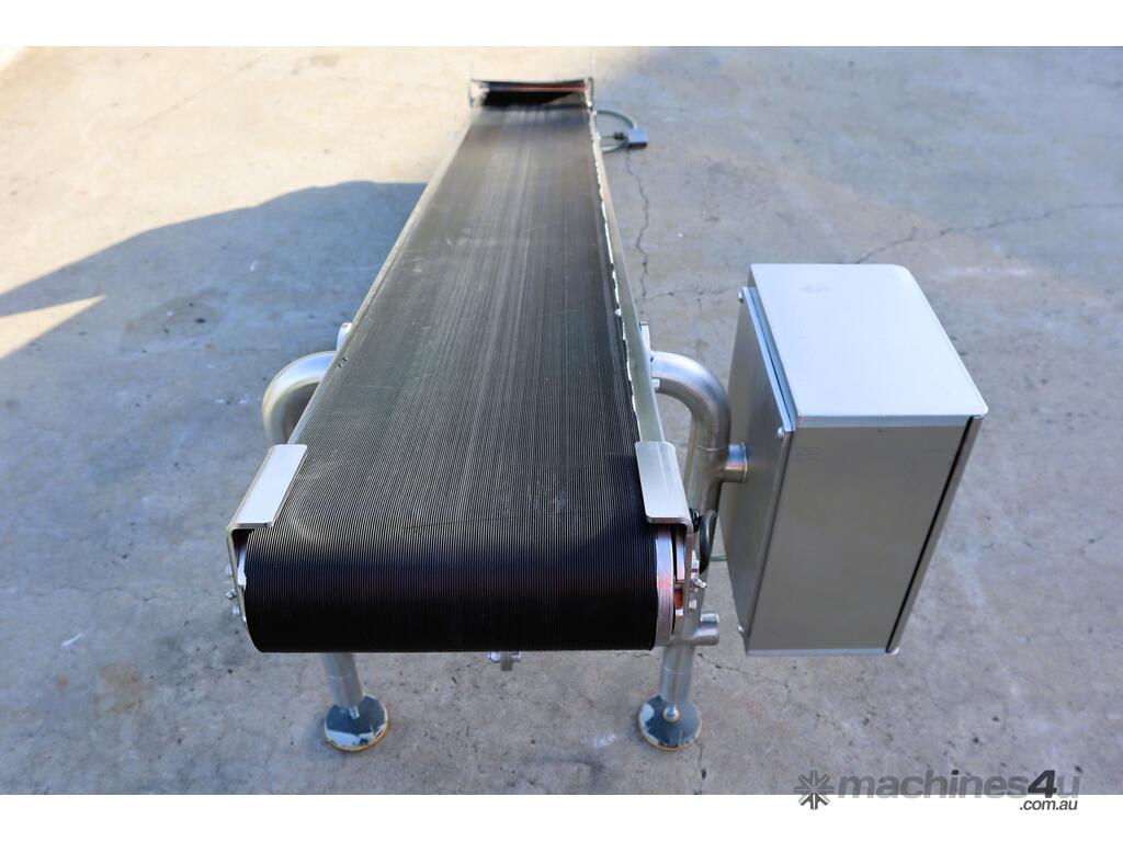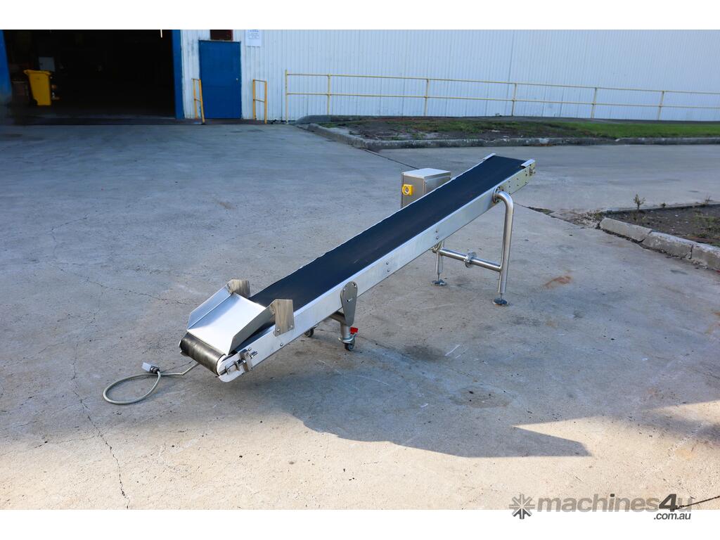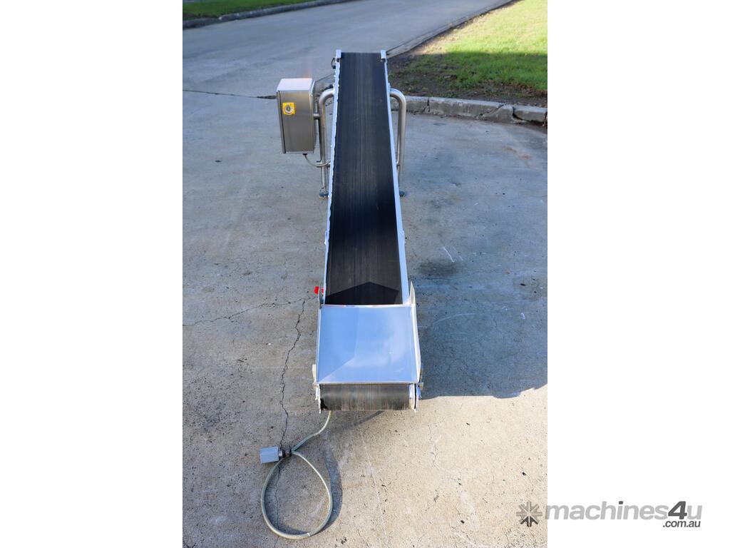 Stainless Steel Incline Motorised Belt Conveyor - 2.5m long - TNA :      $7,091 AUD($7,800 Inc. GST)