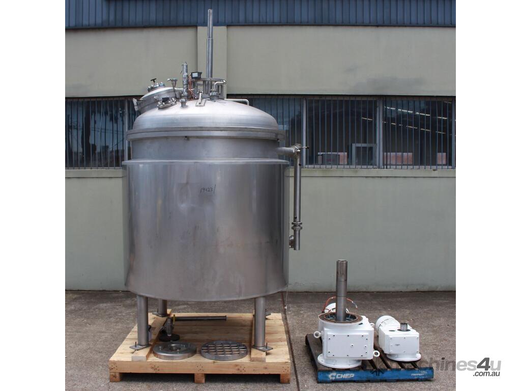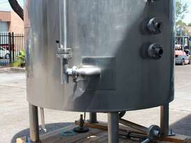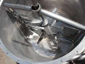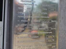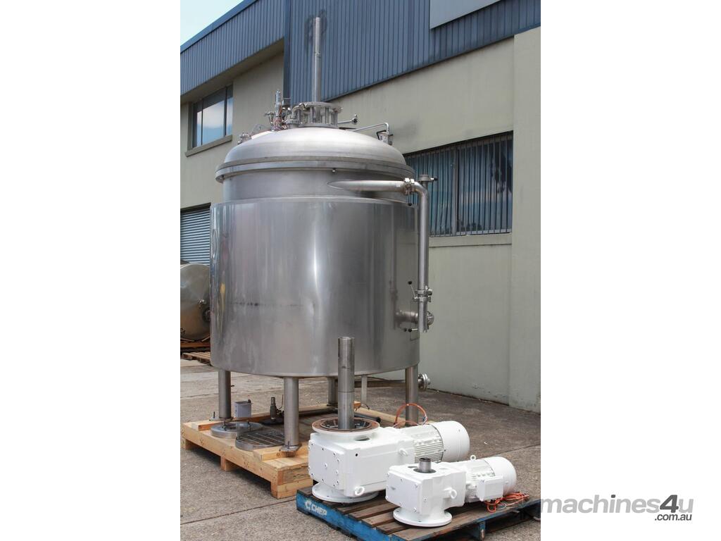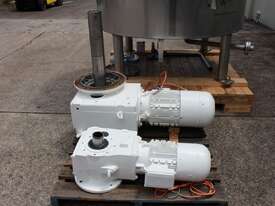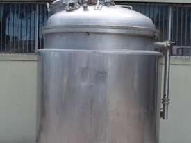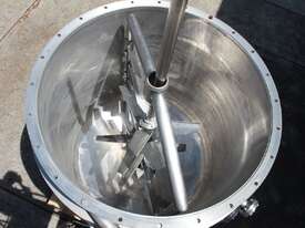 Stainless Steel Jacketed Pressure Vacuum Conta-Rotating Mixing Vessel, Lexa-Mix/Indo Lava/TetraPak", 2500L capacity, 1600mm dia x 1350mm deep stainless steel bowl, grade 316 stainless streel, complete with top entry contra rotating mixer driven by 3 phase 11kw geared motor, dished bolted lid with 500mm dia manway, jacketed bowl, dished bottom with 500mm dia centre discharge, chamber working pressure -1/2.5 Barg, chamber working temp. 121 deg C, jacket working pressure for steam 3 Barg and for water 3 Barg, jacket max. temp 133 deg C, built year 1996