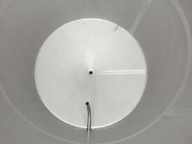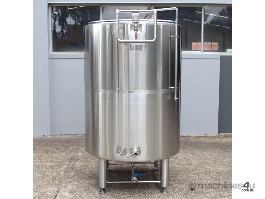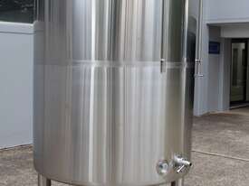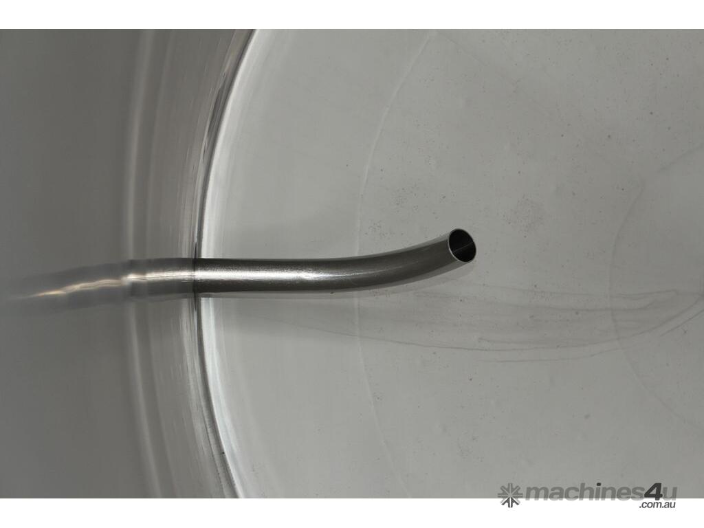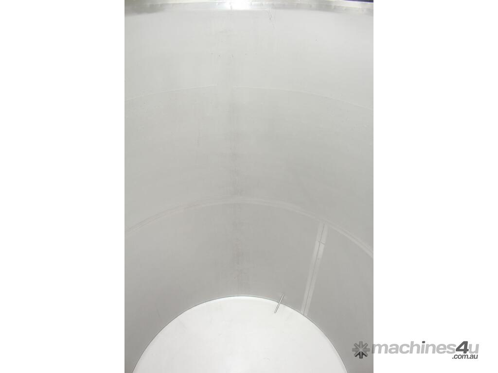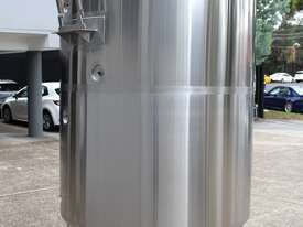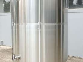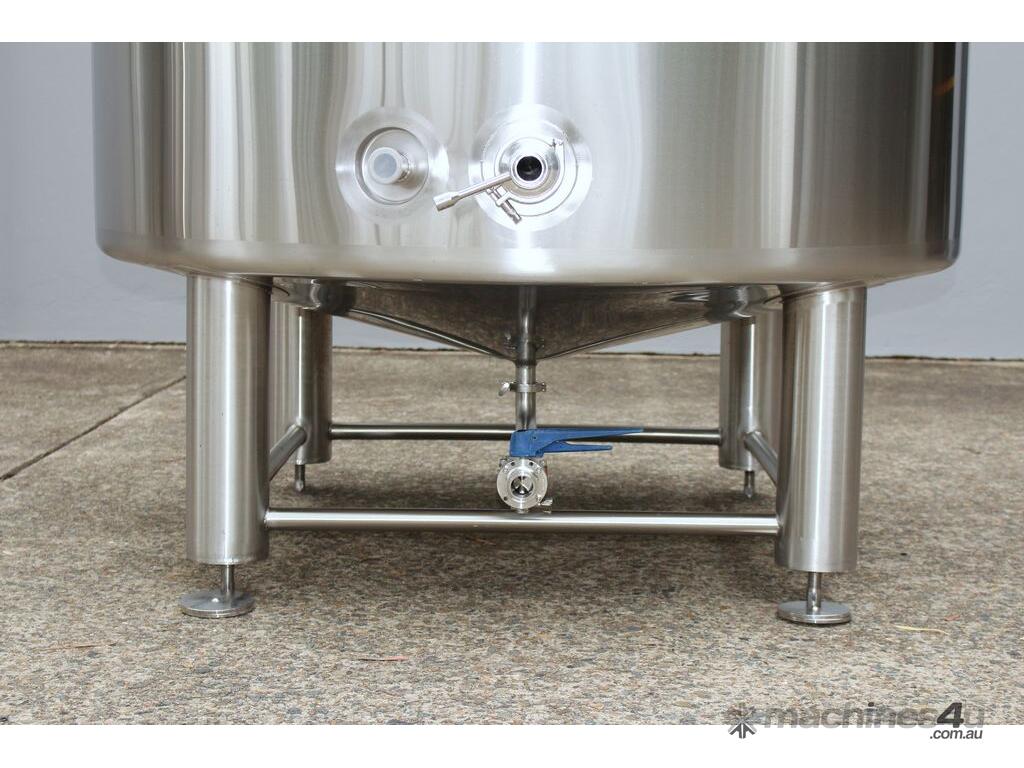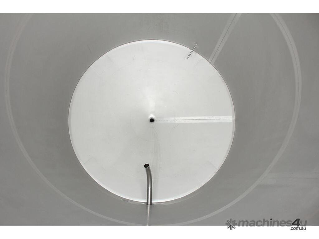 Stainless Steel Jacketed Tank, “TIANTAI”, capacity: 2500L, internal dimension: 1400mm Dia x 1950mm deep, open top with hinged and spring supported lid, conical bottom with 35mm centre outlet turned outside with 35mm dia s/s valve at 210mm height, second outlet of 35mm dia provided at wall bottom side, fully jacketed and insulated from bottom and walls, provided with spray washer ball, 4 tubular legs, overall dimensions: 2000mm long x 1600mm wide x 2750mm high