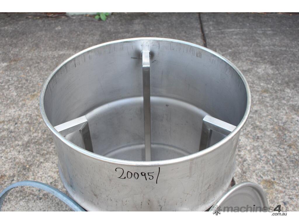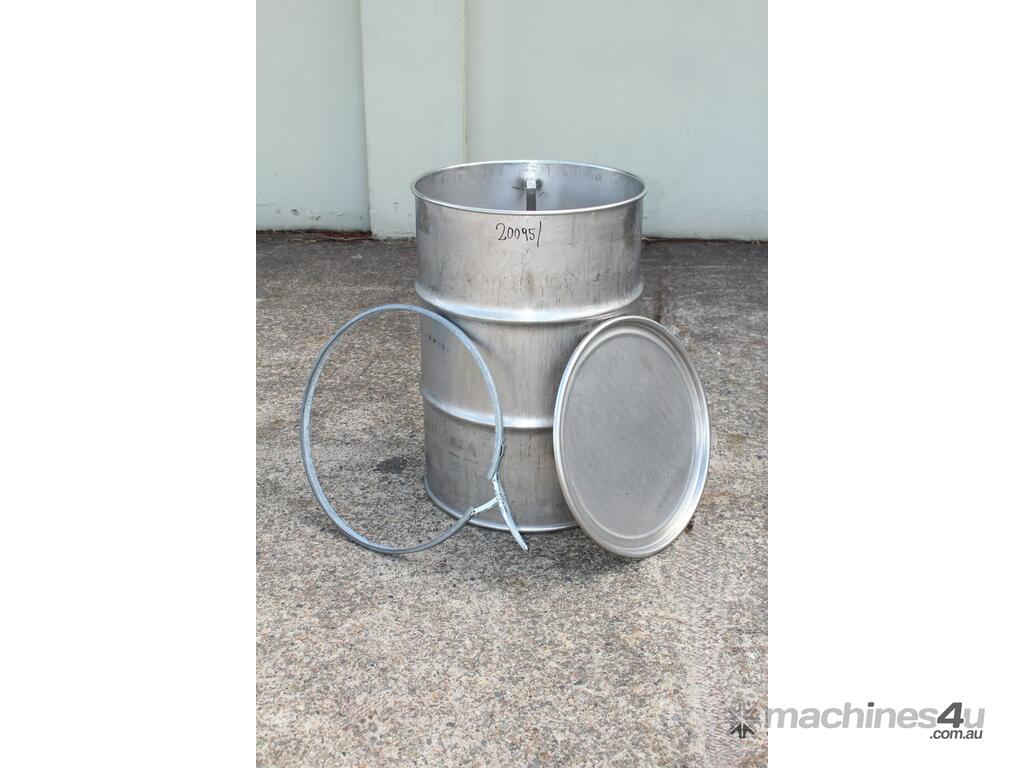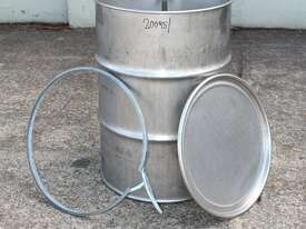 Stainless Steel Mixing Drum, capacity 200L, internal dimensions: 570mm dia x 800mm deep, open top with lid & clamp