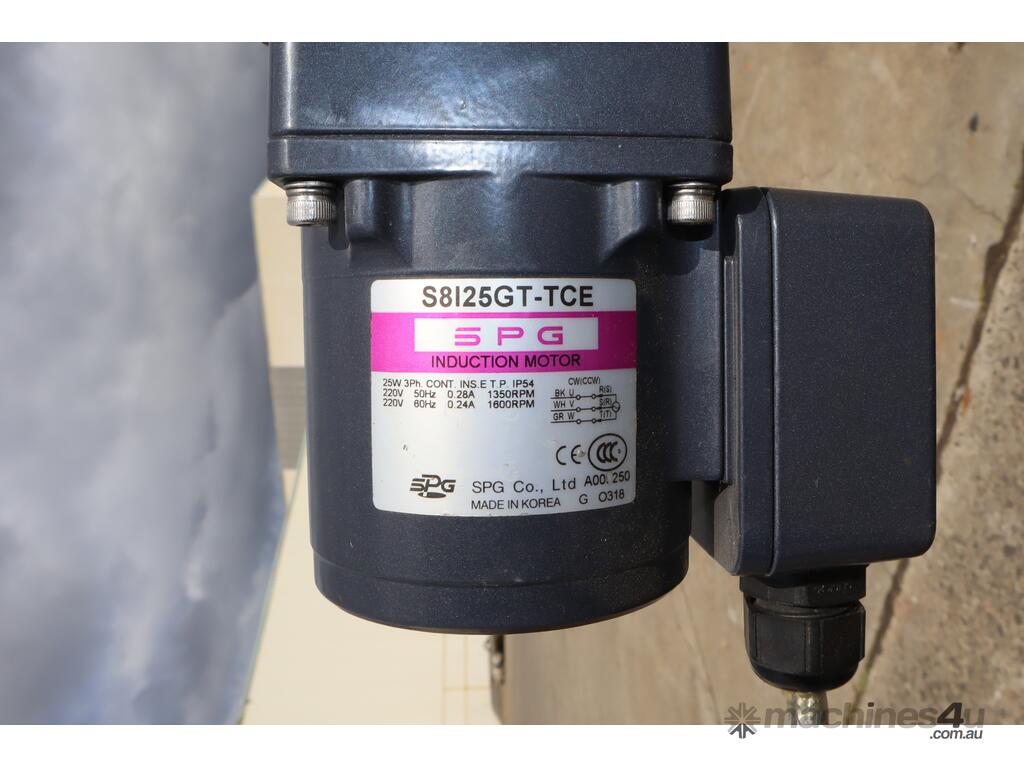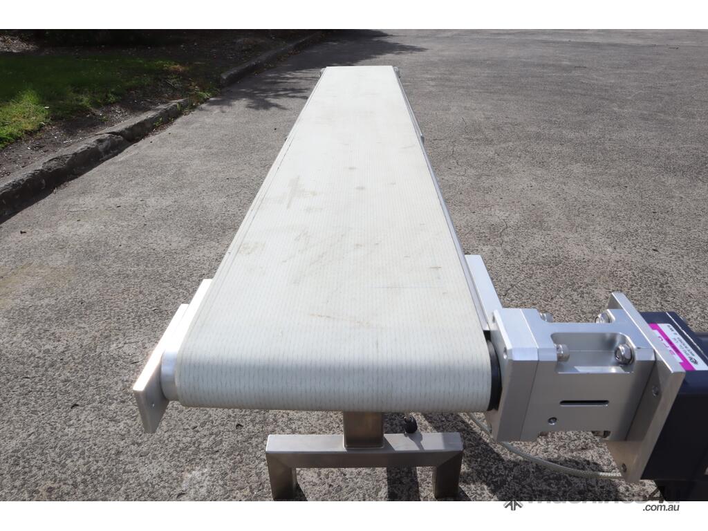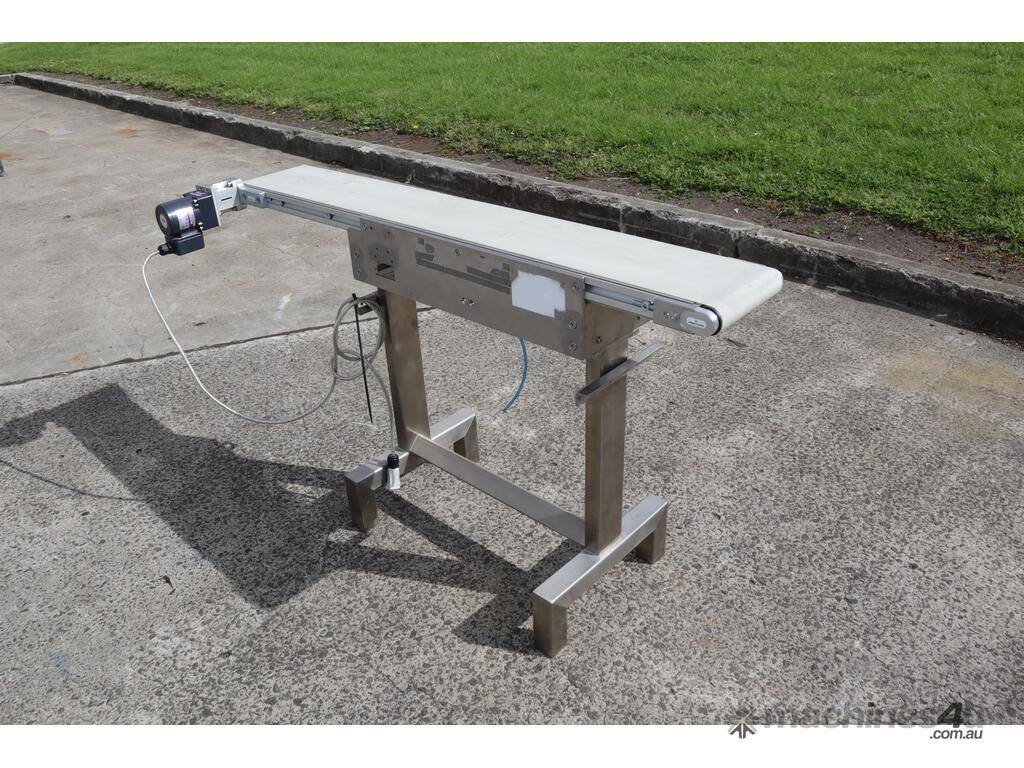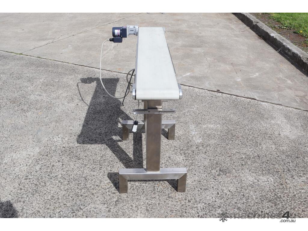 - Description: Stainless Steel Belt Conveyor System featuring SPG gear-head induction motors