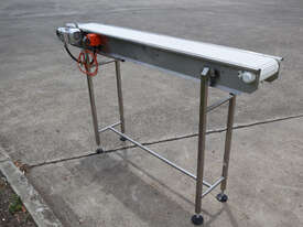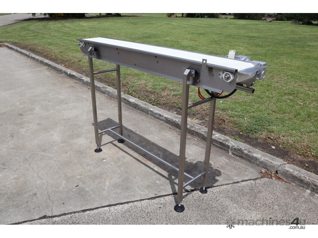 This stainless steel conveyor is in excellent condition. Designed for smooth and hygienic product transfer in food processing, packaging, or light industrial environments etc.