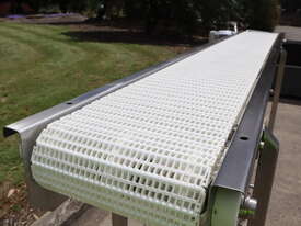 Equipped with a white modular interlocking belt, this conveyor offers reliable and low maintenance operation while ensuring easy cleaning to ensure high hygienic standards in the work environment. Built with a robust stainless steel frame and driven by a geared motor, the unit provides consistent conveying performance across a variety of production lines.
