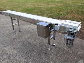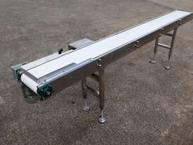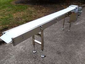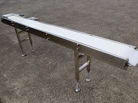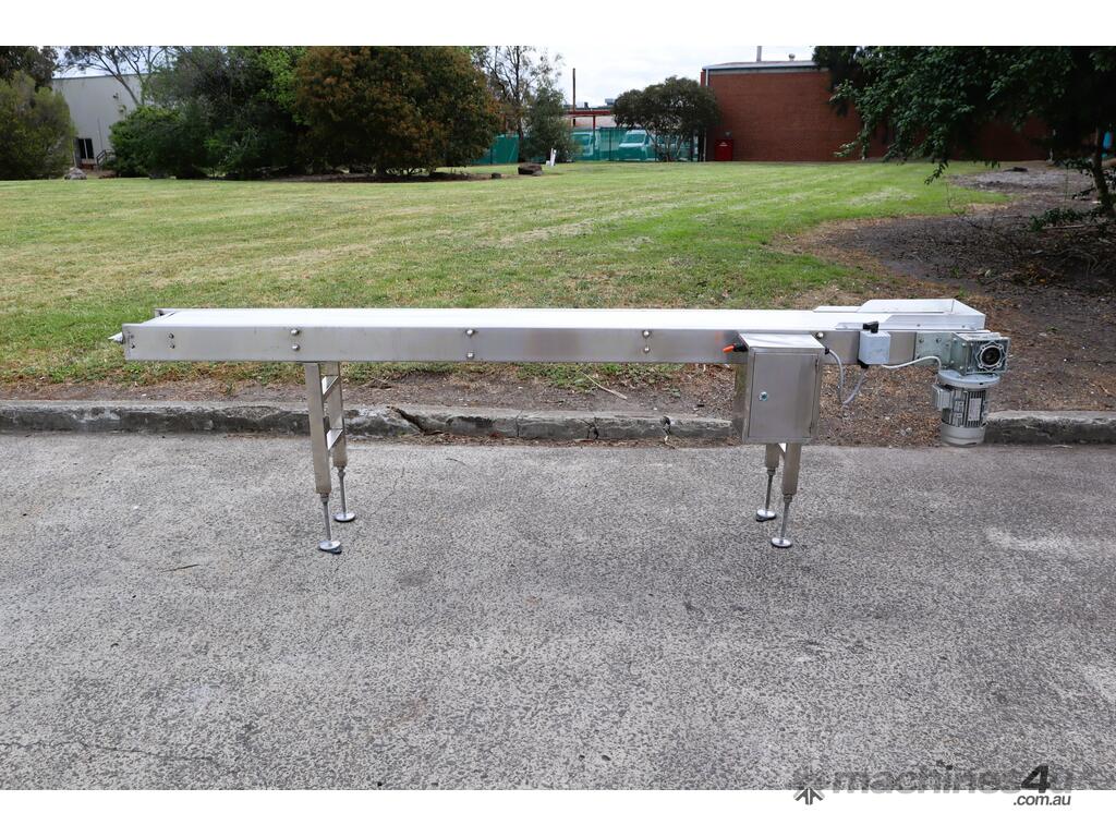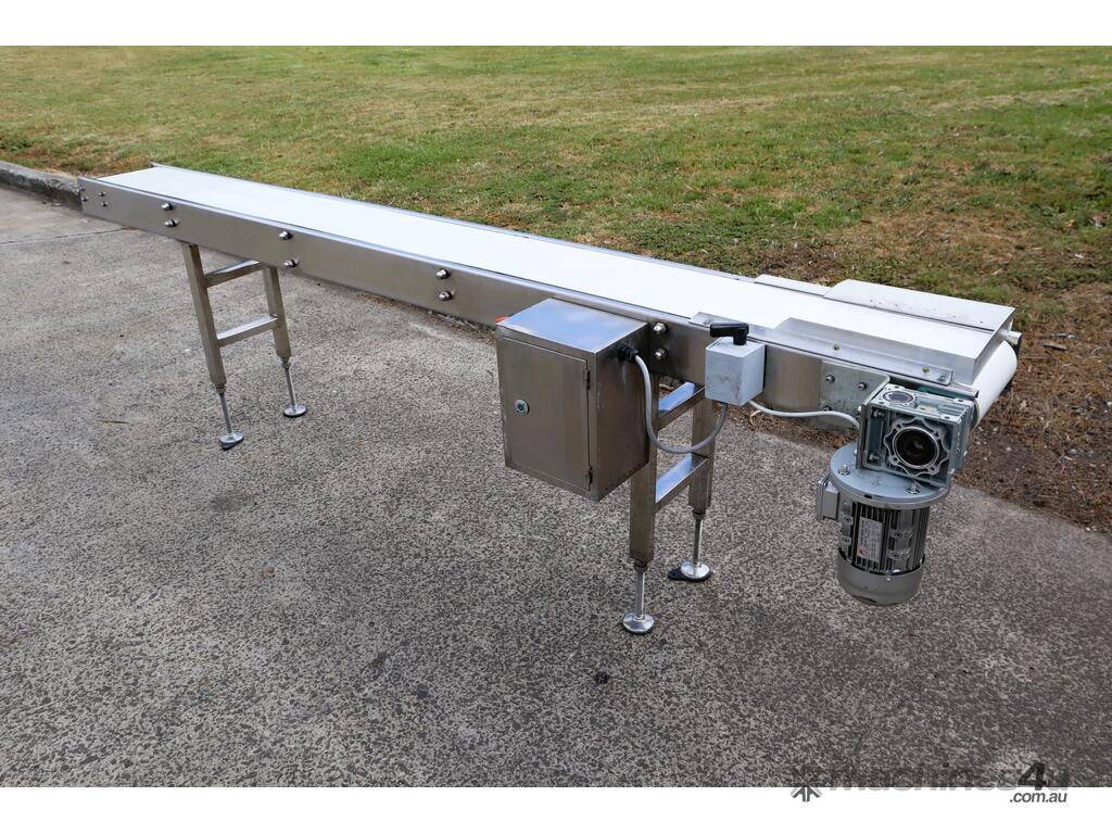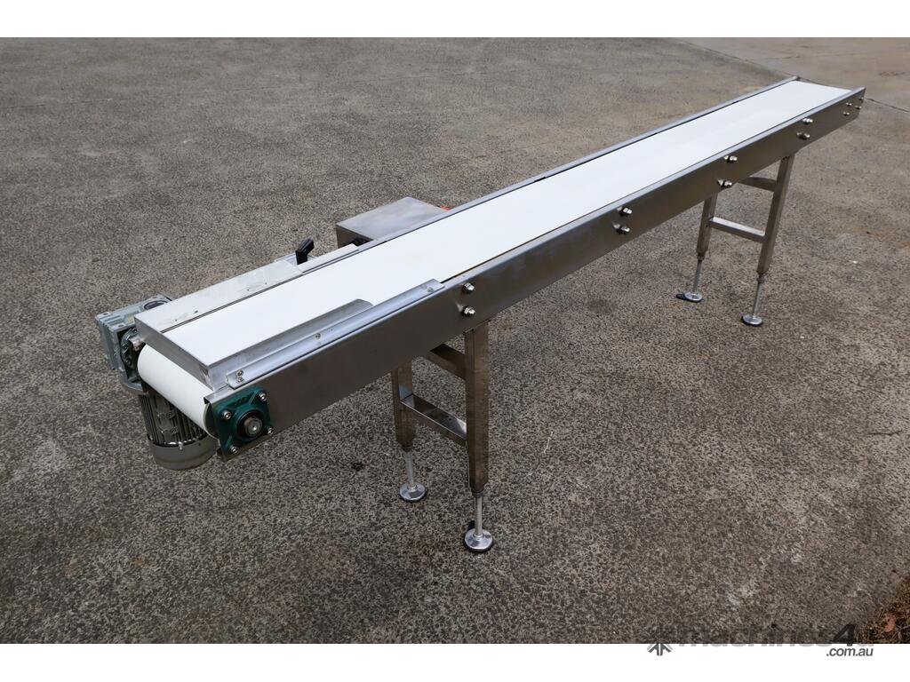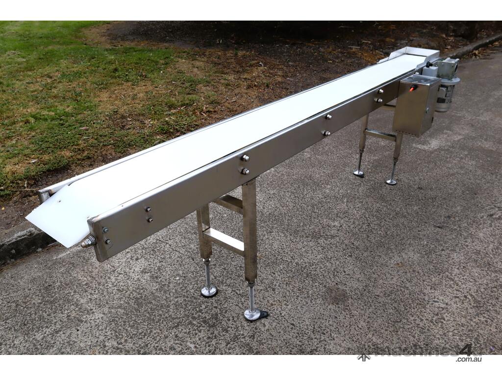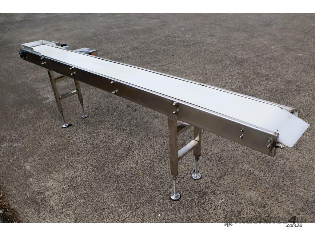 This stainless steel conveyor is in excellent condition. Designed for smooth and hygienic product transfer in food processing, packaging, or light industrial environments etc. Equipped with a food grade belt, this conveyor offers reliable and low maintenance operation while ensuring easy cleaning to ensure high hygienic standards in the work environment. The leg heights can be manually adjusted.