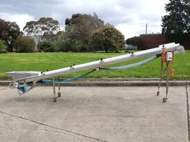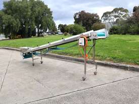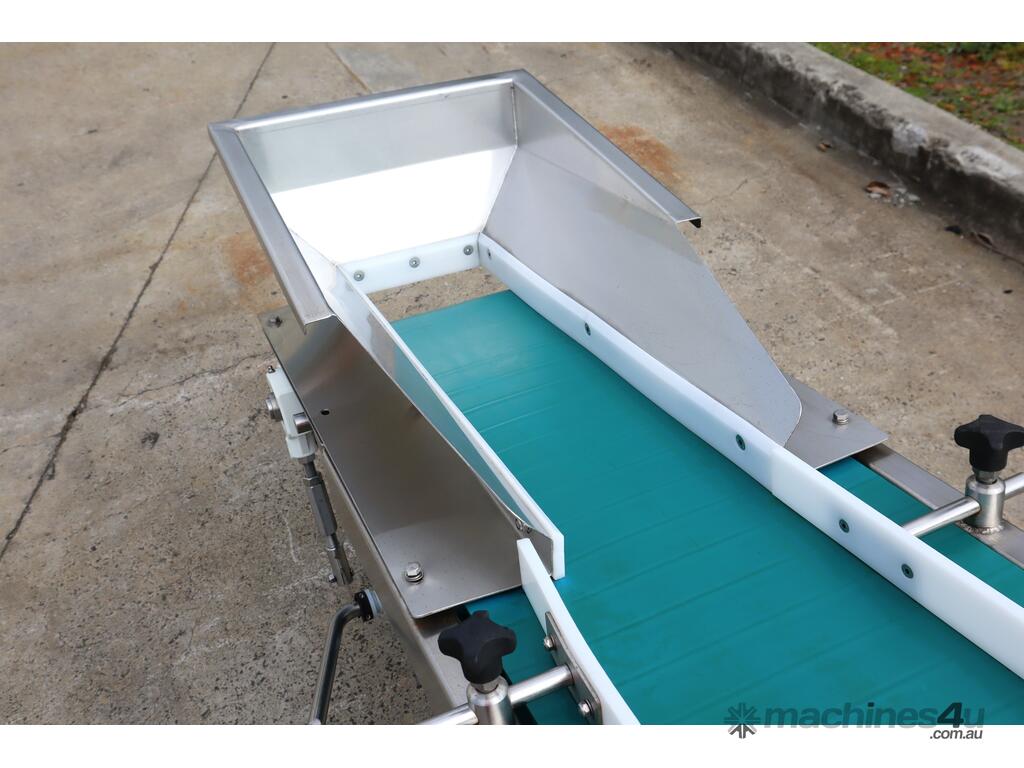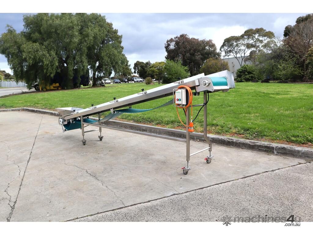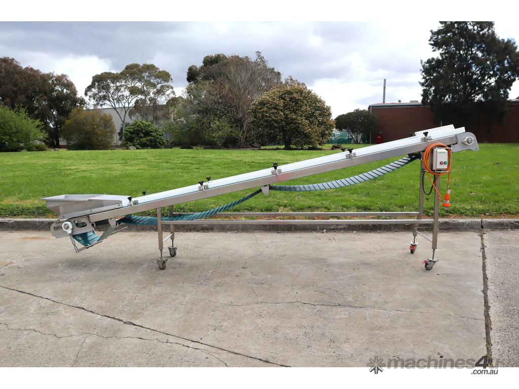 Mounted on a stainless steel frame with lockable castor wheels for easy mobility and includes an adjustable infeed hopper for controlled loading. Easy to clean design and sturdy construction, this conveyor offers long service life and minimal maintenance in demanding environments.