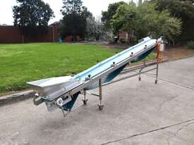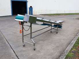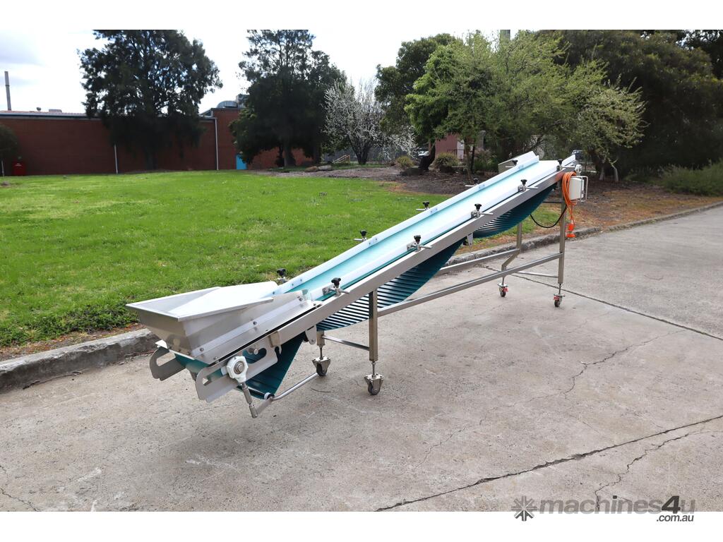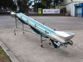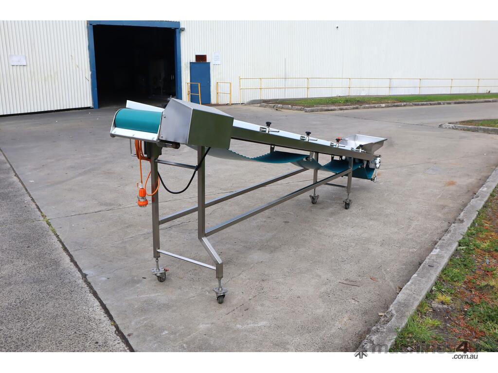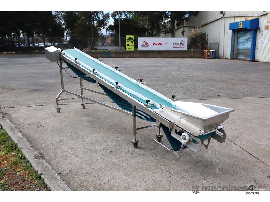 Stainless steel incline conveyor designed for reliable and efficient product transfer between processing stages. Built with a smooth belt for gentle material handling, this unit is ideal for packaging lines, light manufacturing, or general conveying applications requiring consistent throughput and clean operation etc.