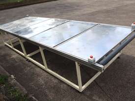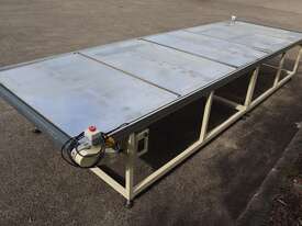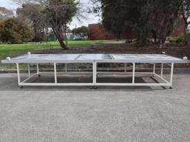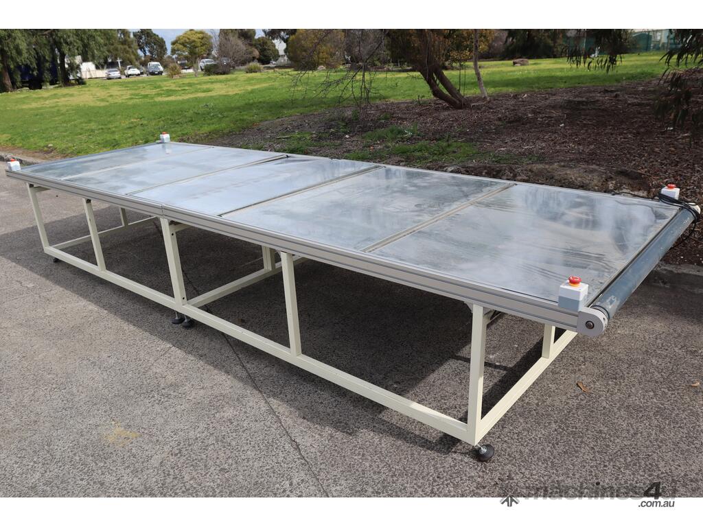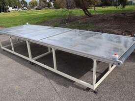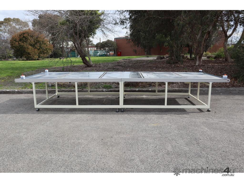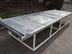 Large and wide, sturdy and versatile stainless steel roller conveyor frame in great condition. It has never been used.