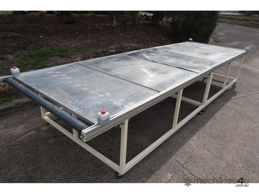 Note: PVC belts are available (see photos) and can be installed upon buyer interest. These can be with track guides or without (refer to photos).