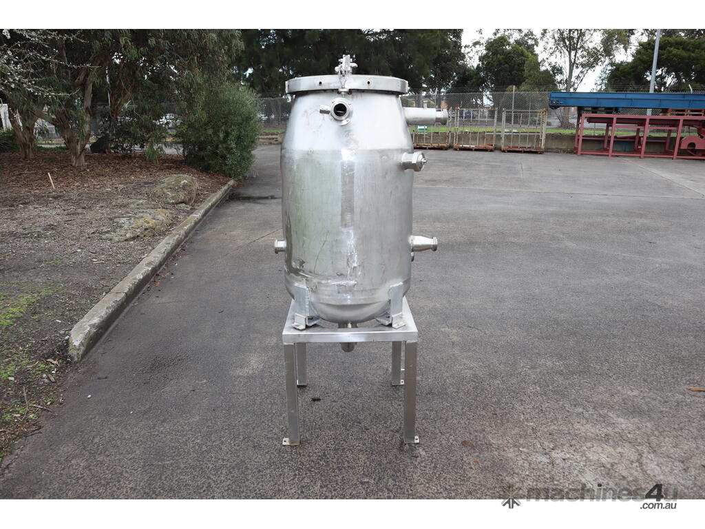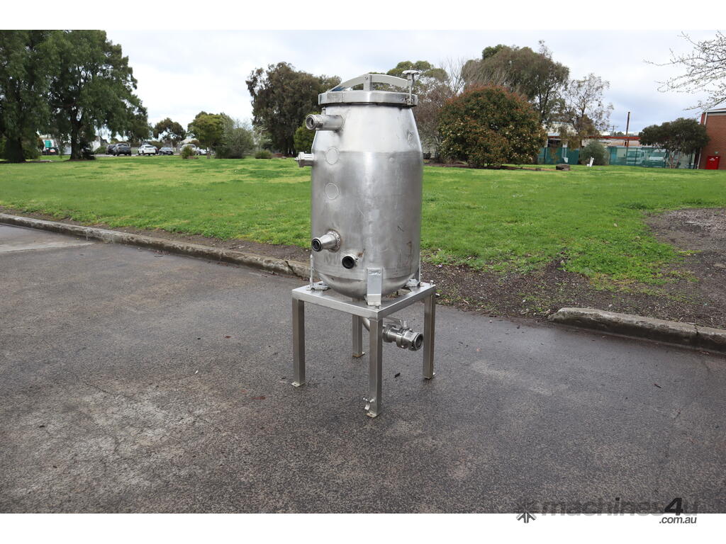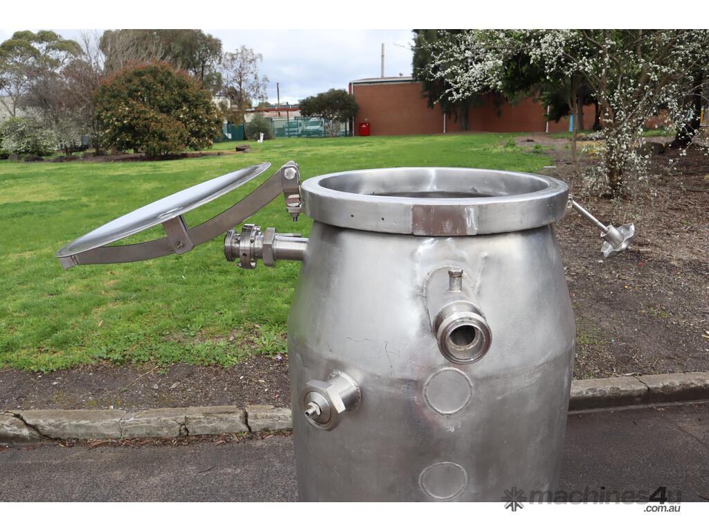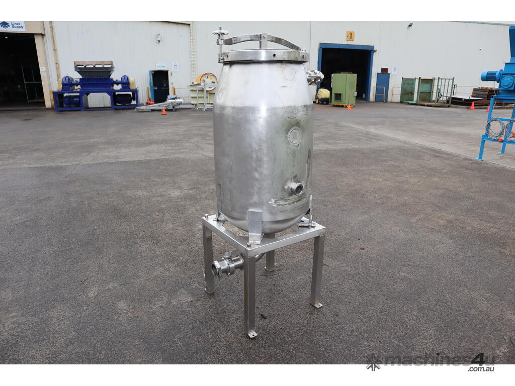 - Description: Stainless Steel Multi-Access Processing and Storage Vessel with Locking Lid and Valves