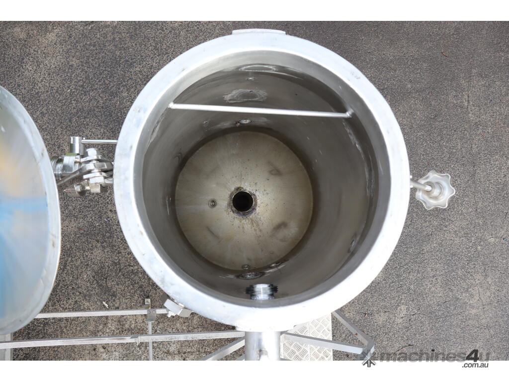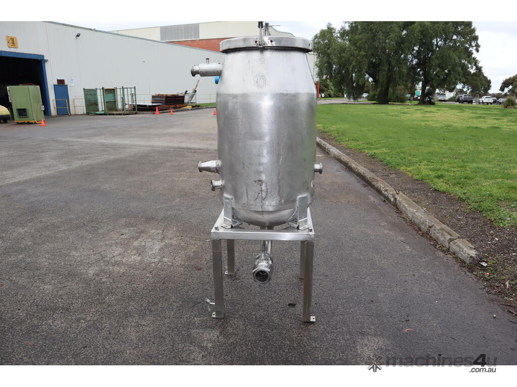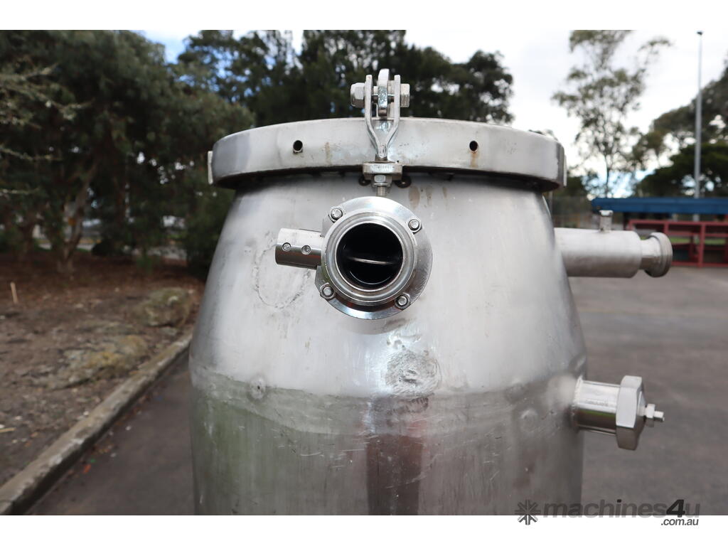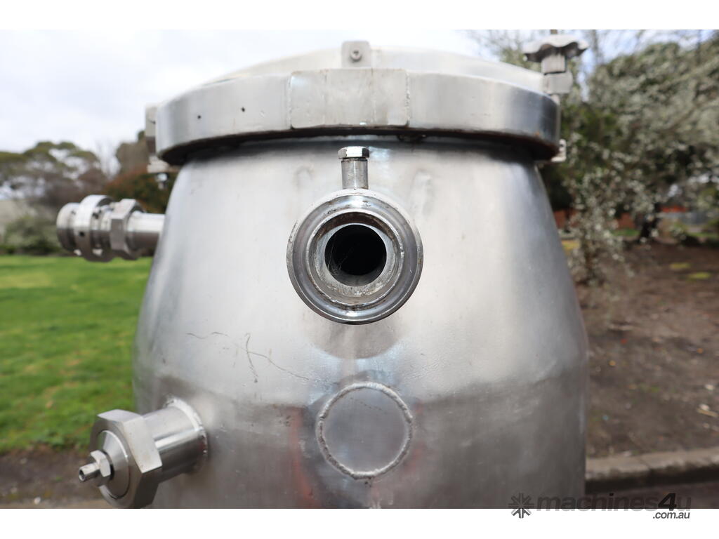 - Description: Stainless Steel Multi-Access Processing and Storage Vessel with Locking Lid and Valves