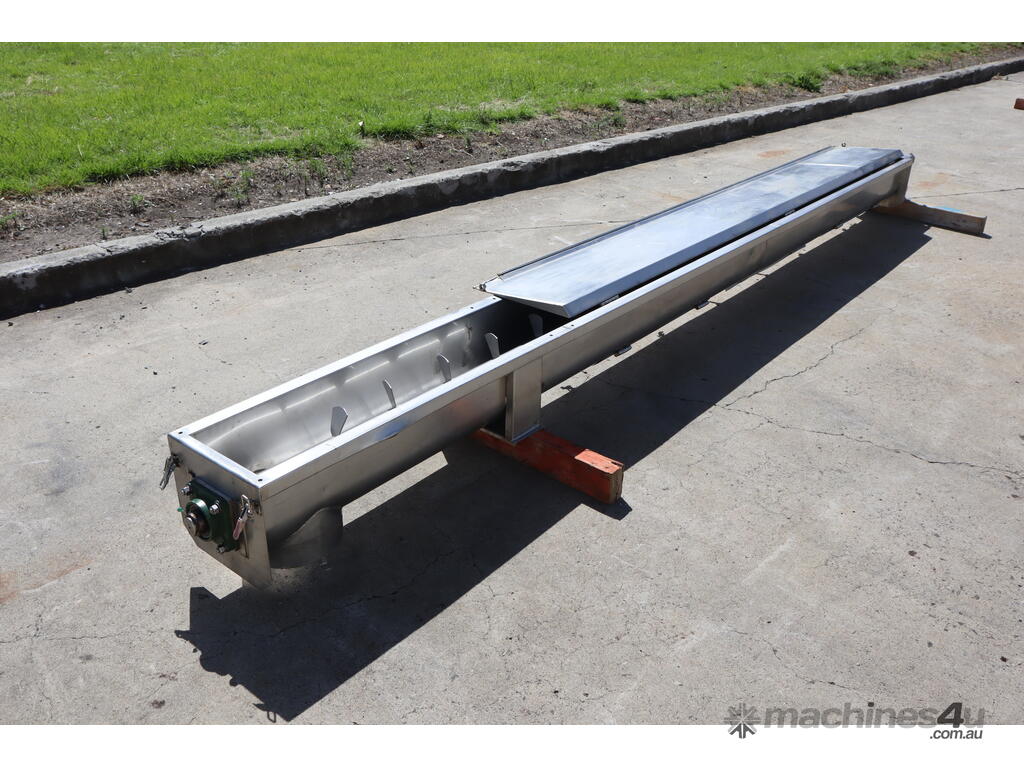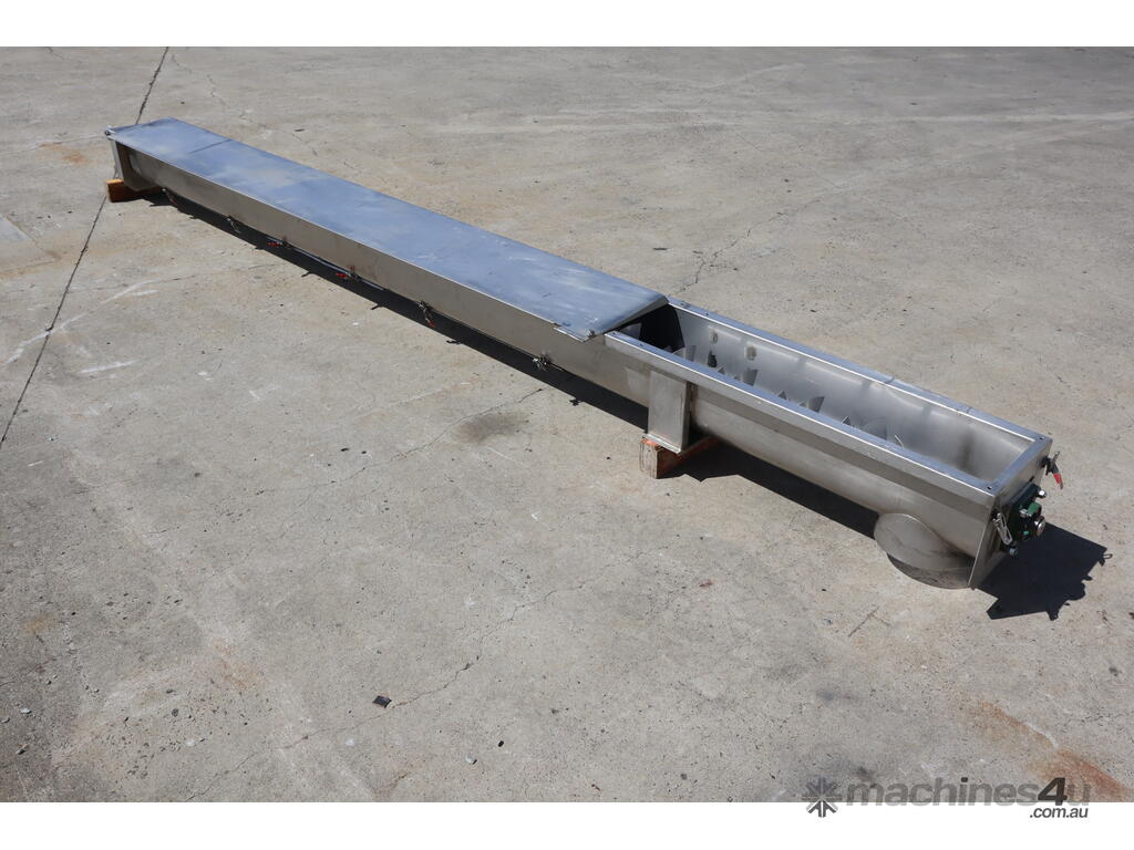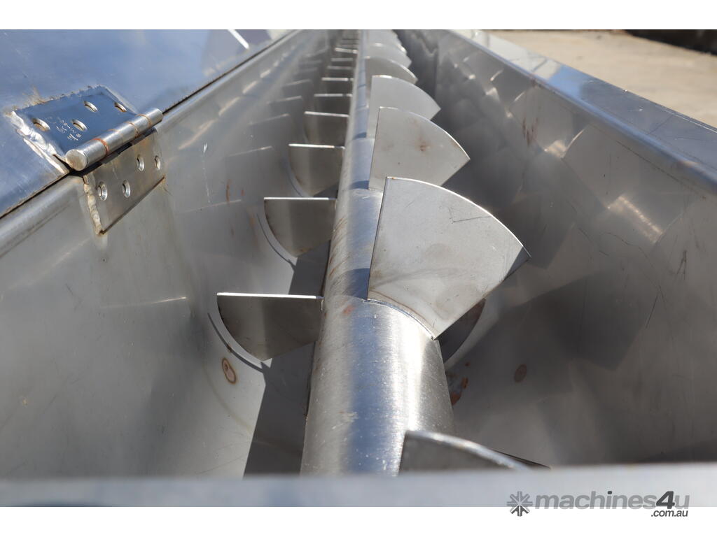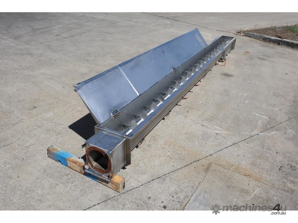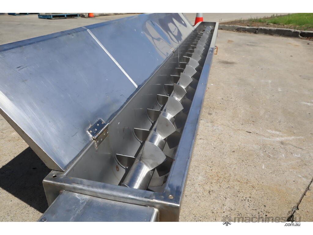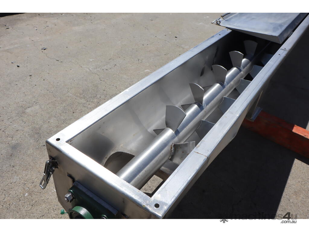 Stainless steel screw auger fitted with paddles in excellent condition. For controlled conveying and mixing rather than pure auger transfer. Suitable for food processing, agricultural, and industrial handling operations etc.