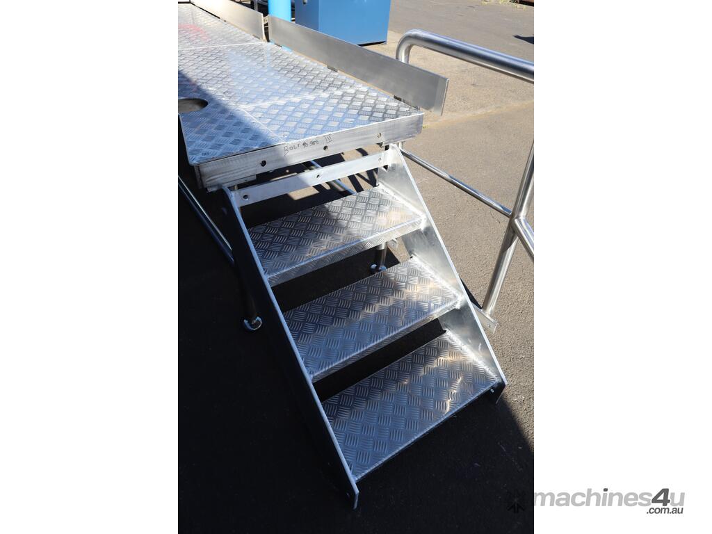 It comes as 4 pieces: 2 x platform sections, 1 x 3-step stairs, 1 x small railing.