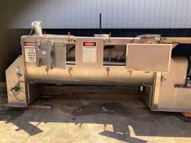 Stainless Steel Ribbon Blender, Gardner?, 2500L capacity, bowl dimensions (W x H x D): 2830mm x 1070mm x 1100mm, 10mm clearance between the ribbon blades and the bowl, driven by an approx 5.5kw motor and reduced by a big gearbox down to a speed of approx. 8rpm, previously used to mix sugar