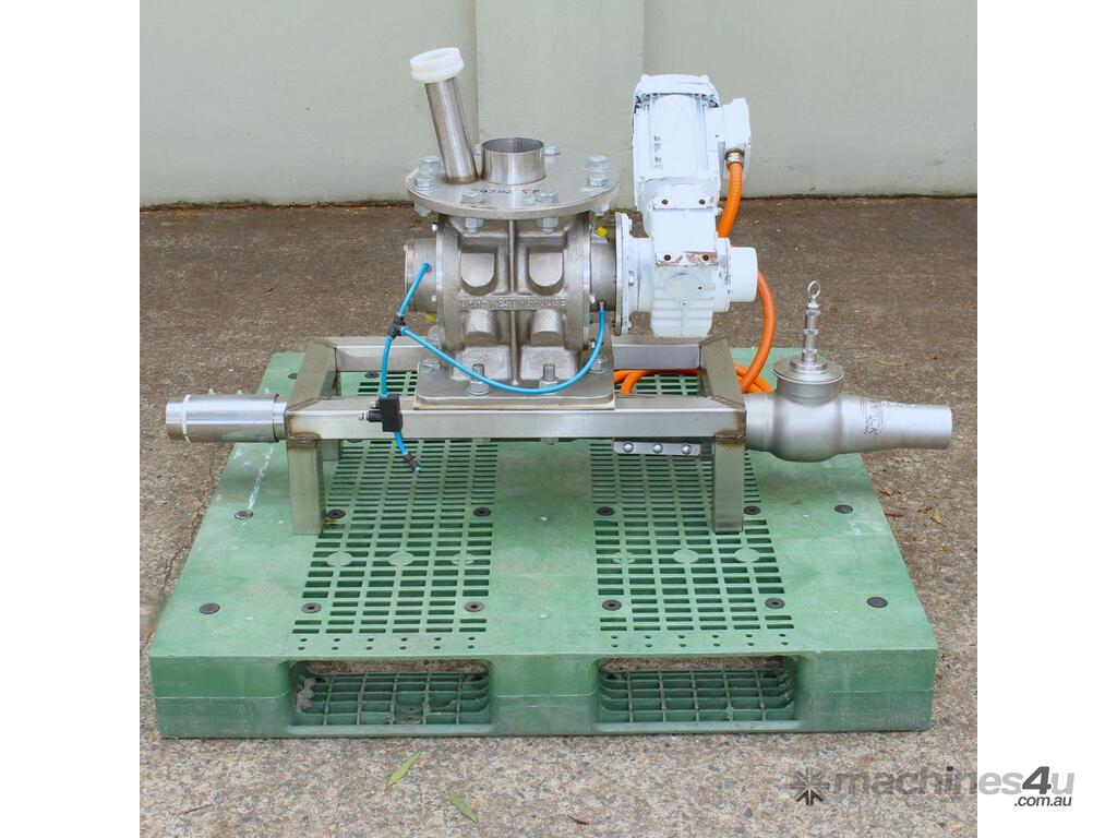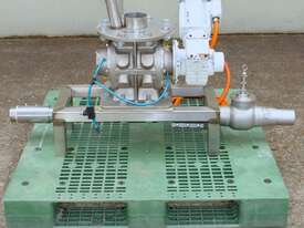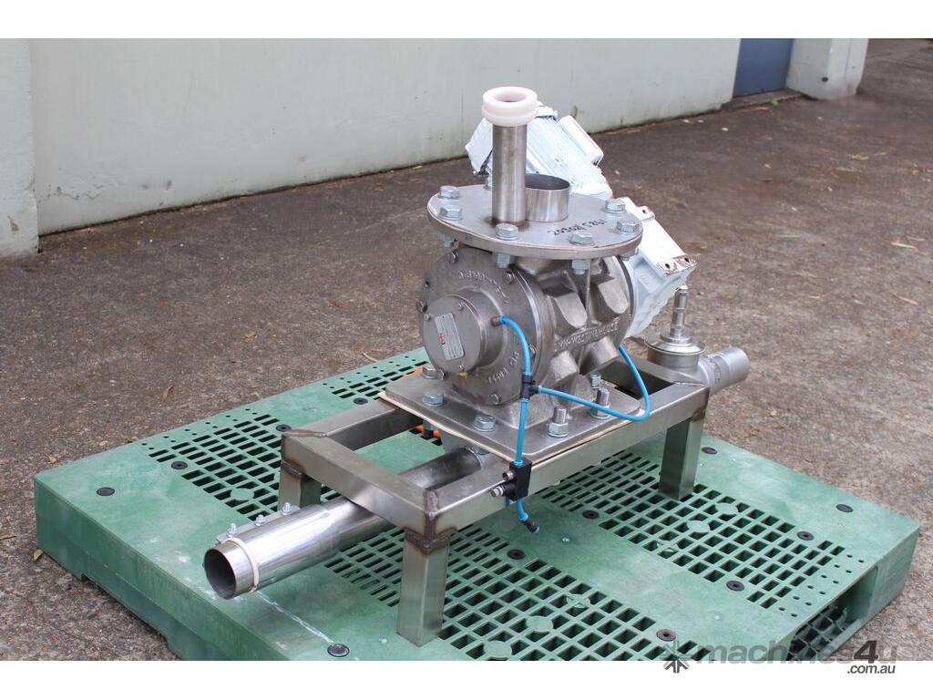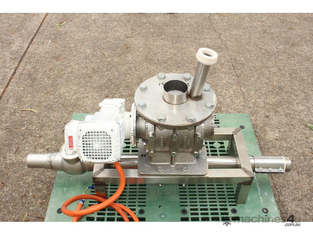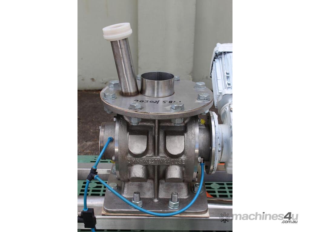 Stainless Steel Rotary Valve, "DMN Westinghouse" Type ML200, 200mm dia, driven by 3 phase 0.75kw 21rpm geared motor, mounted on a stainless steel frame with a removable magnet through the Pipe
