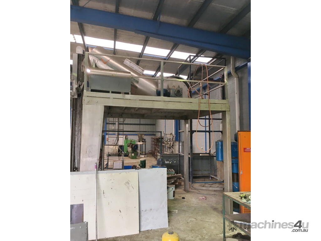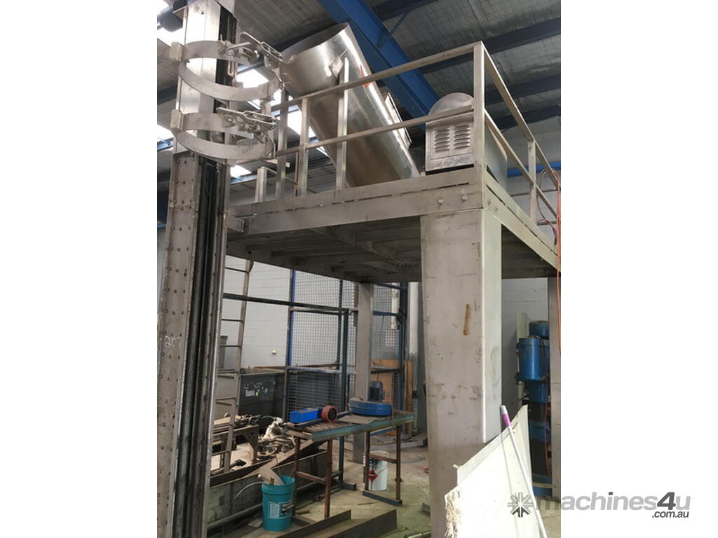 The frozen blockes were lifted up via the bin lifter, then slide down the St/Steel chute onto the spiked mill for shredding.