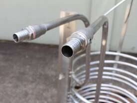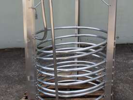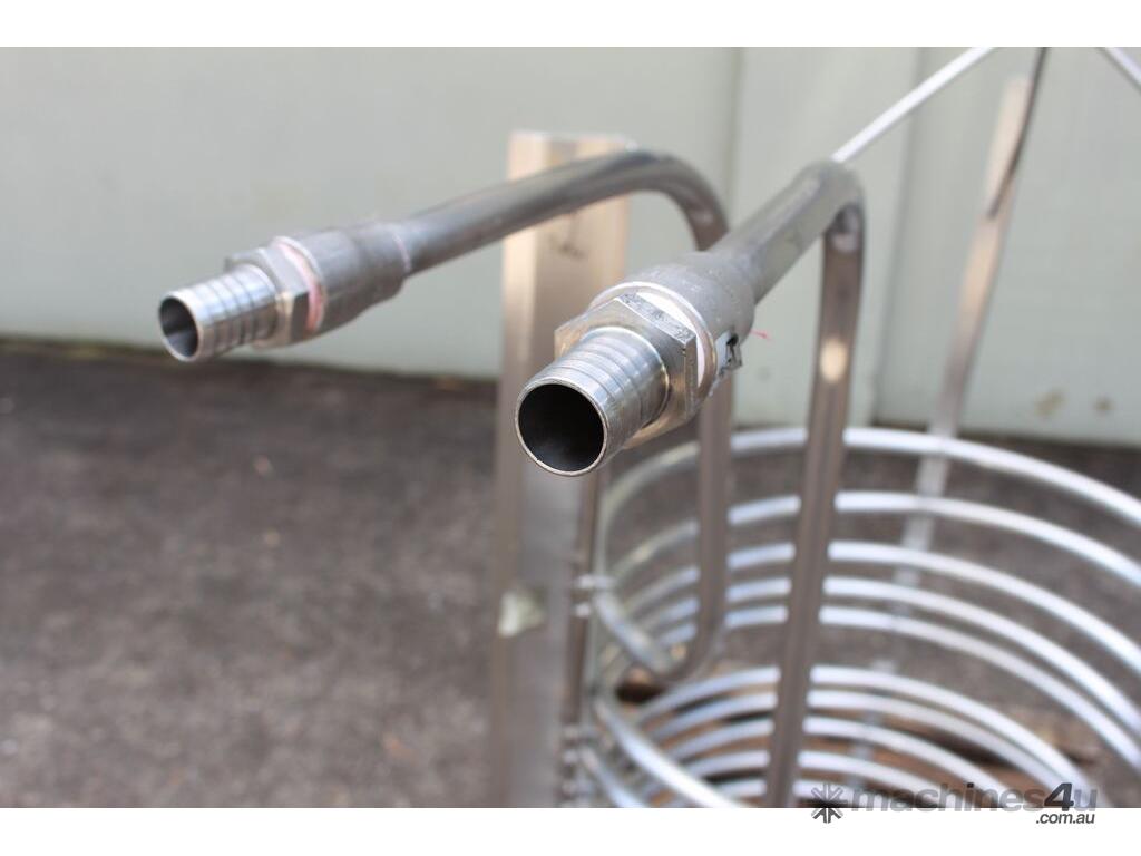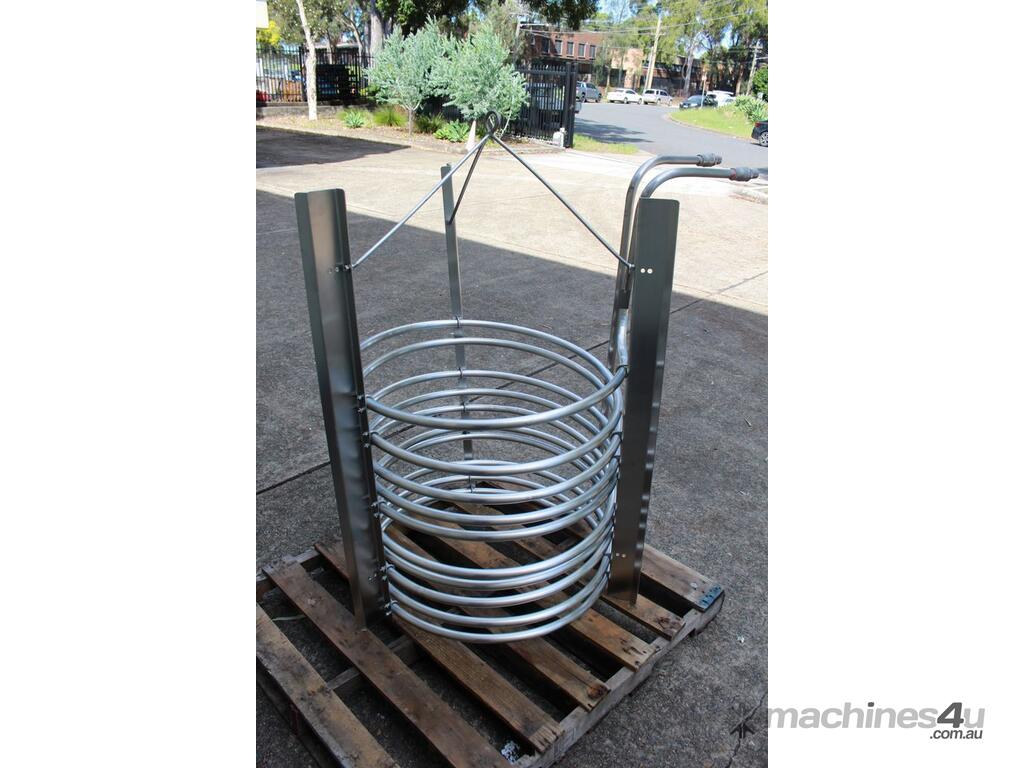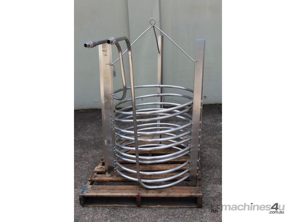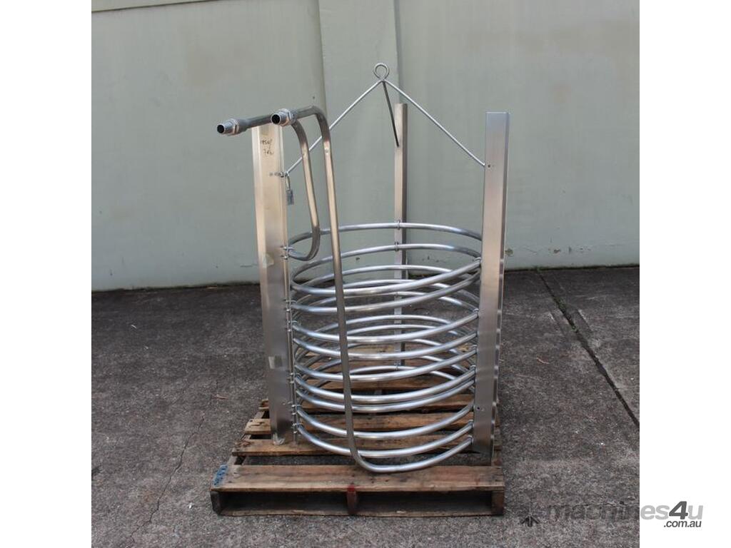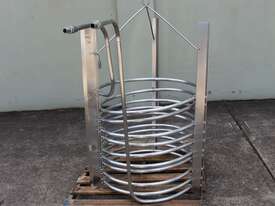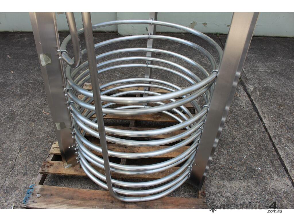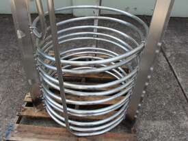 Stainless Steel Submursion Heating/Cooling Coil, "Spirax Sarco" complete with 10 turns of 25mm dia tube at 750mm dia x 700mm deep, all grade 316 stainless steel, suitable to be lowered into tank with minimum dia of 900mm, total height is 1400mm