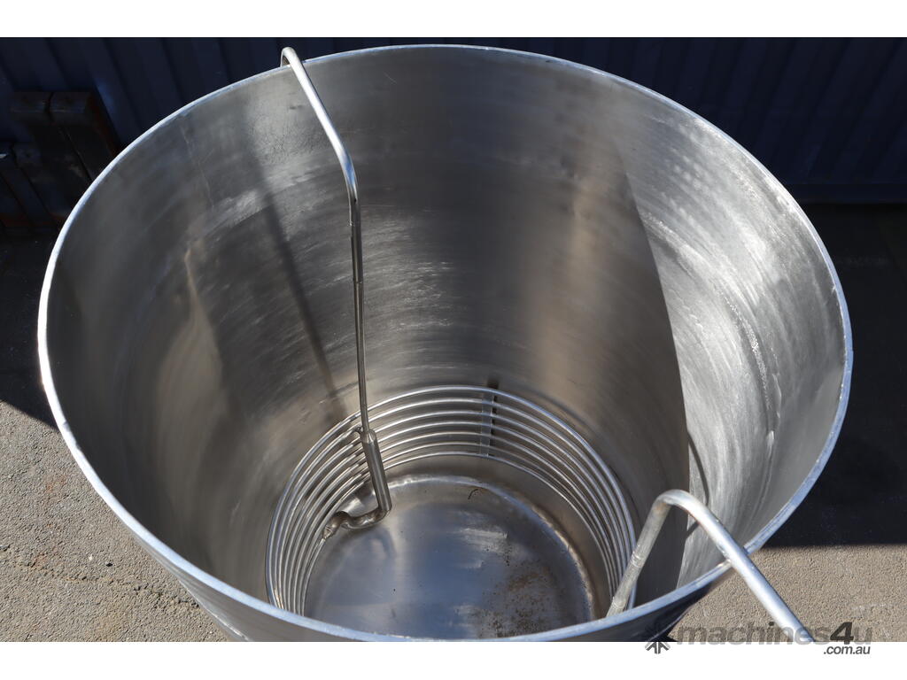 It is made out of stainless steel and it is sitting on top of a steel frame stand.
