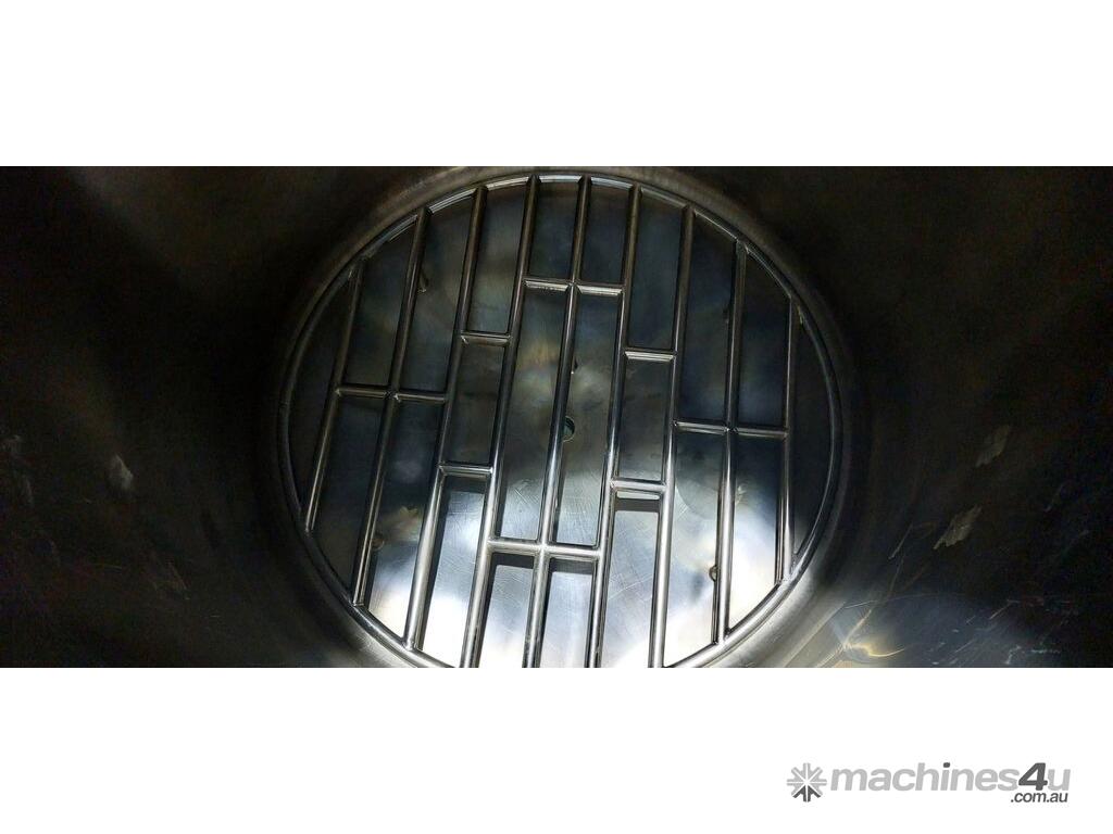 Stainless Steel Tank, 1000 litre capacity, fitted with 1000kg load cells, manway cover with clamp closure, tri-clover fittings for inlet and outlet connections, butterfly valve on outlet, internal support bars at tank base, adjustable legs, ideal for food, pharmaceutical and chemical processing applications
