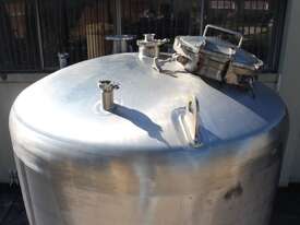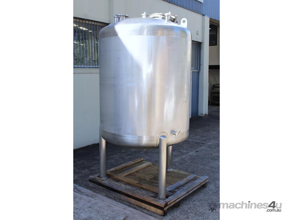 Stainless Steel Tank, capacity 3000L, internal dimensions: 1500mm dia x 1600mm deep, totally enclosed with 400mm dia manway and lid, dished bottom with 50mm dia centre outlet, 3 x tubular legs