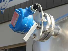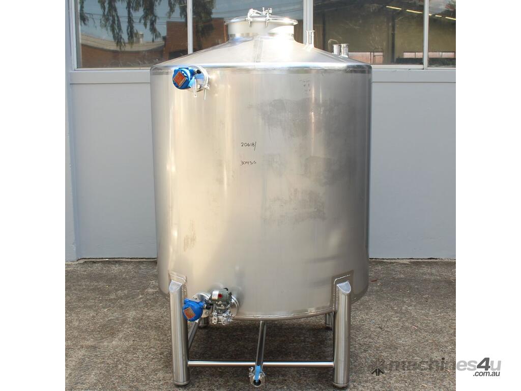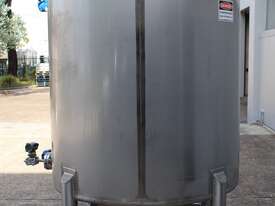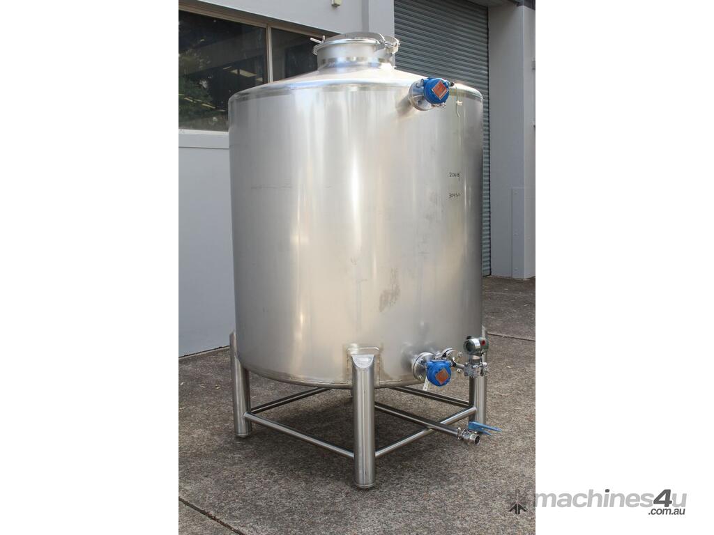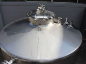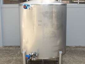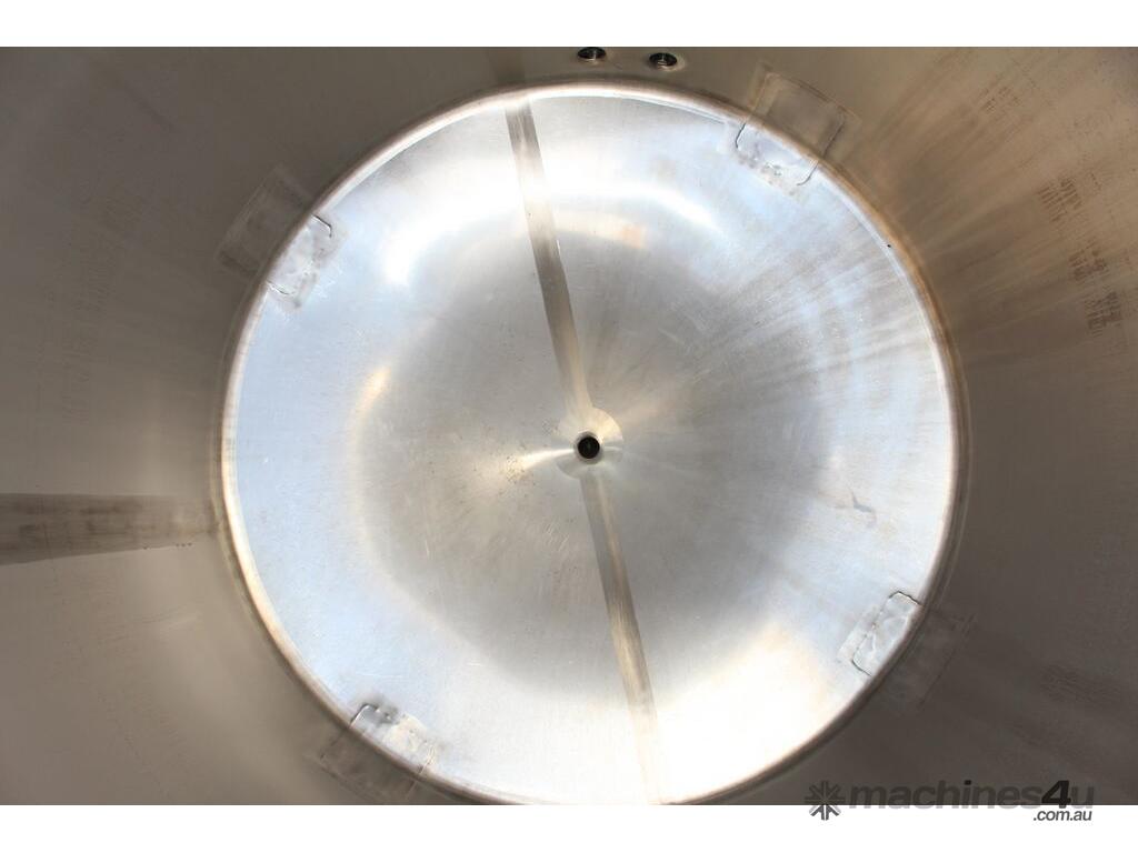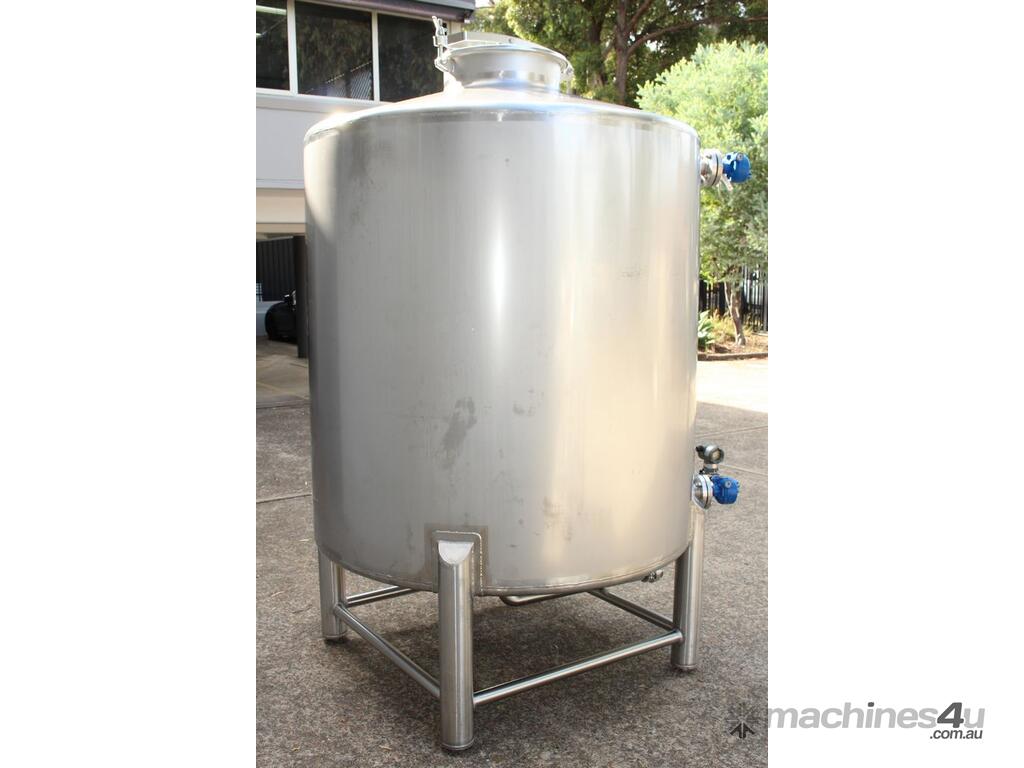 Stainless Steel Tank, 3,000L capacity, internal dimensions of 1500mm diameter - 1500mm deep, fully enclosed design with a 450mm diameter top-entry manway and hinged lid, conical bottom with a 50mm diameter centre outlet turned to the side, mounted on four welded stainless steel tubular legs