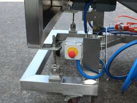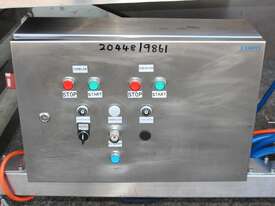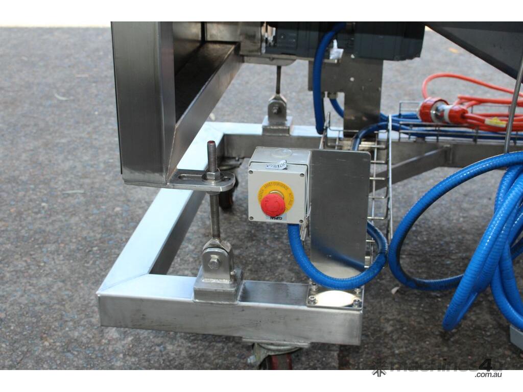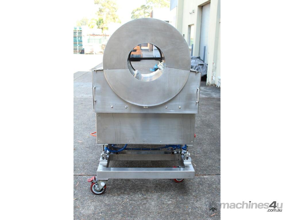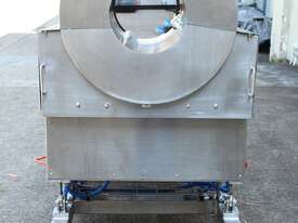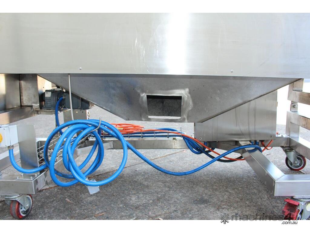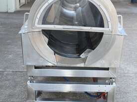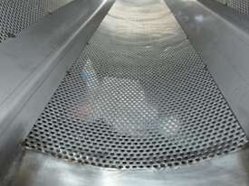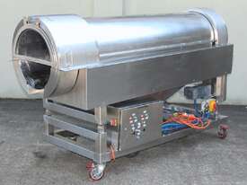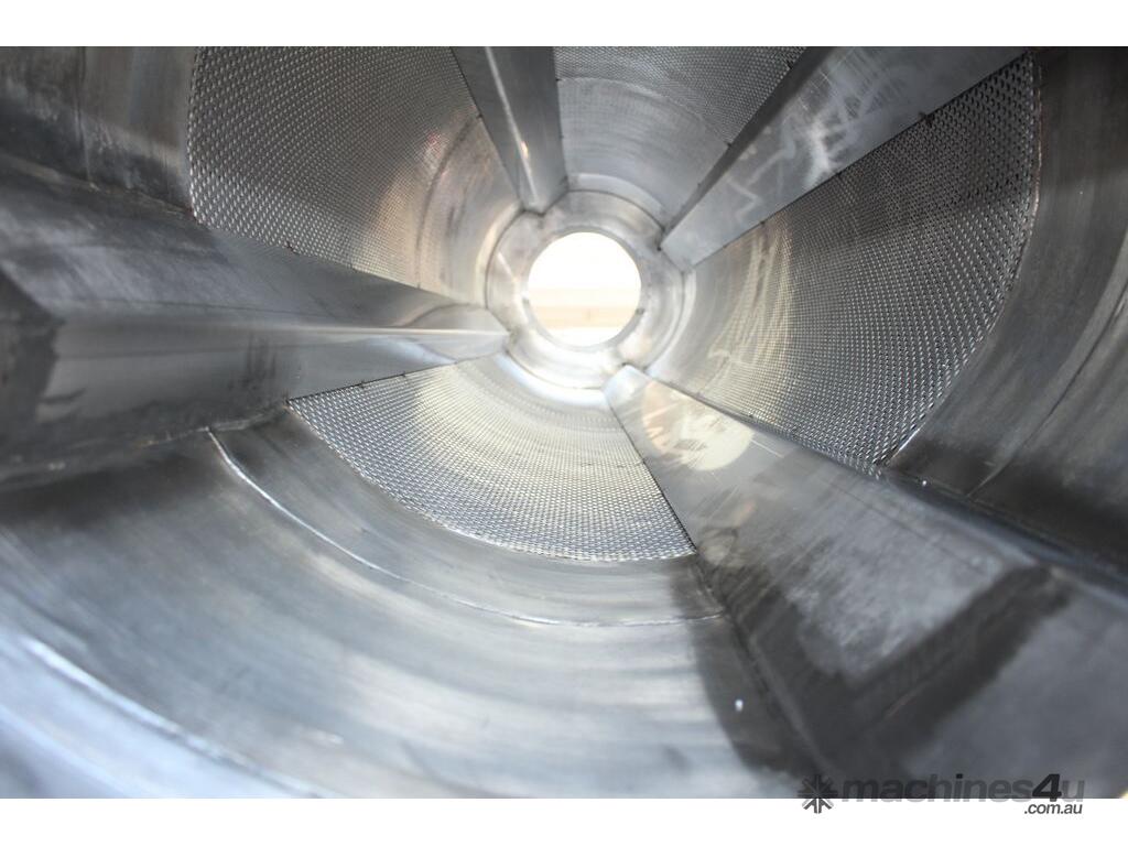 Stainless Steel Trommel Drum Rotary Screen, internal drum dimensions 580mm diameter x 2560mm long, perforated with 5mm mesh screen and fitted with 4 longitudinal baffles, completely enclosed design with bottom discharge hopper for residuals, driven by 3 phase geared motor, supplied complete with control panel, all stainless steel construction on mobile frame, overall dimensions 950mm wide x 2600mm long x 1650mm high, suitable for screening, separation and product grading applications