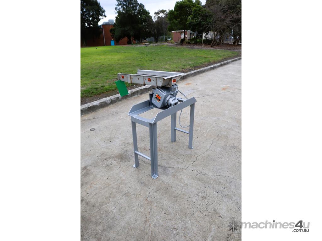 This stainless steel vibratory feeder unit is compact, sturdy and in good working condition.
