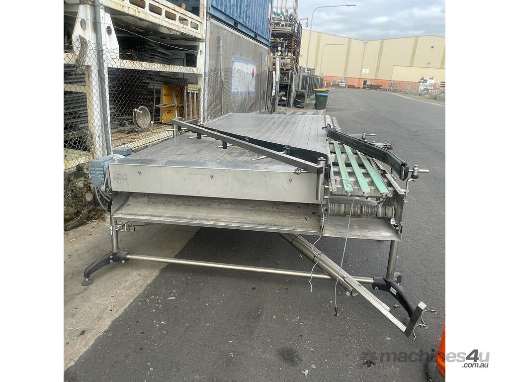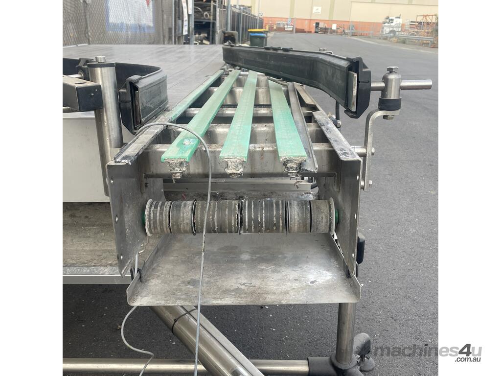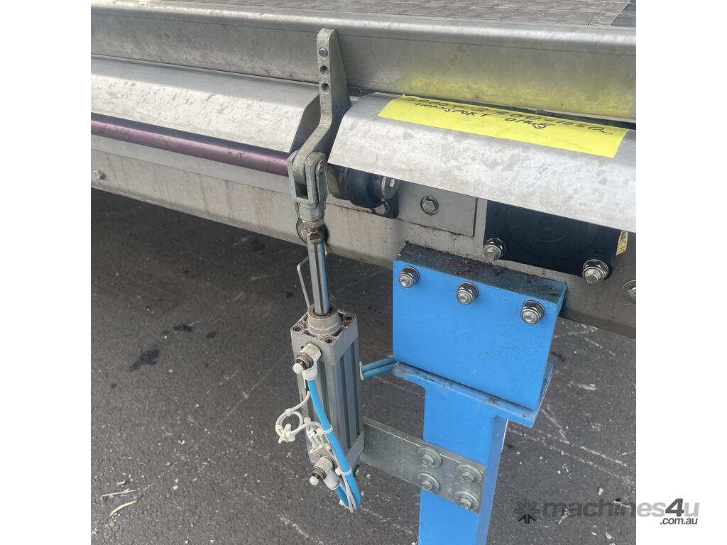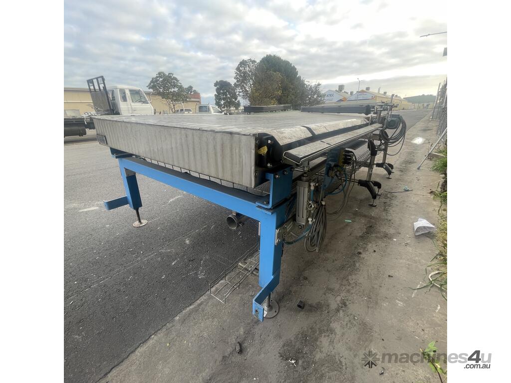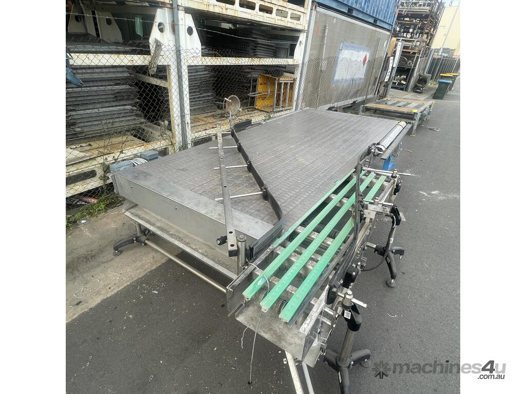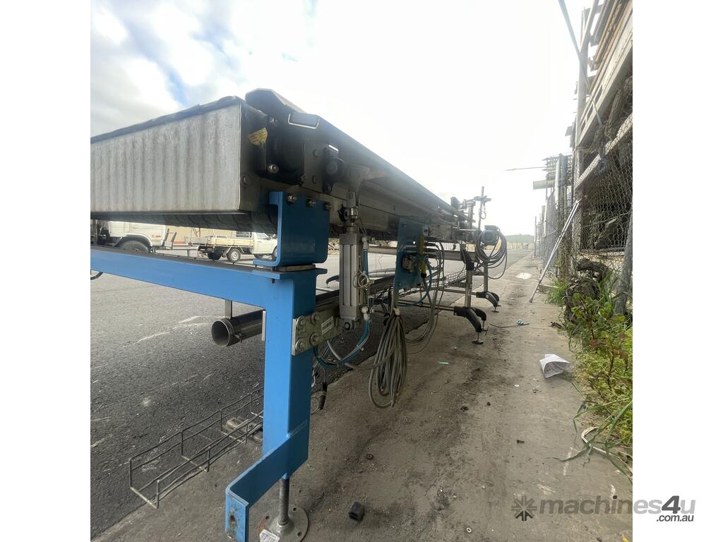 The sides have pneumatic ram operated guide bars so the unit can funstion selectivly in multiple directions , this component was part of a large automated wine botel carton loading and palatising system