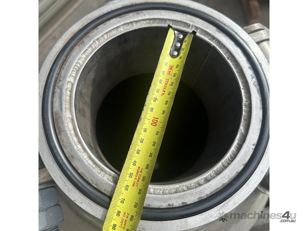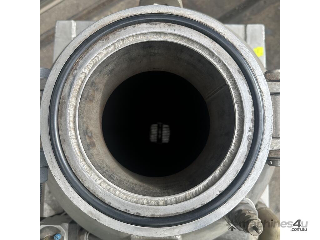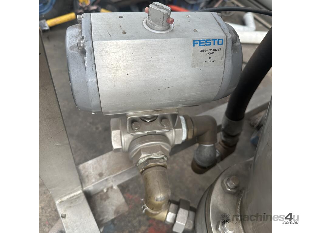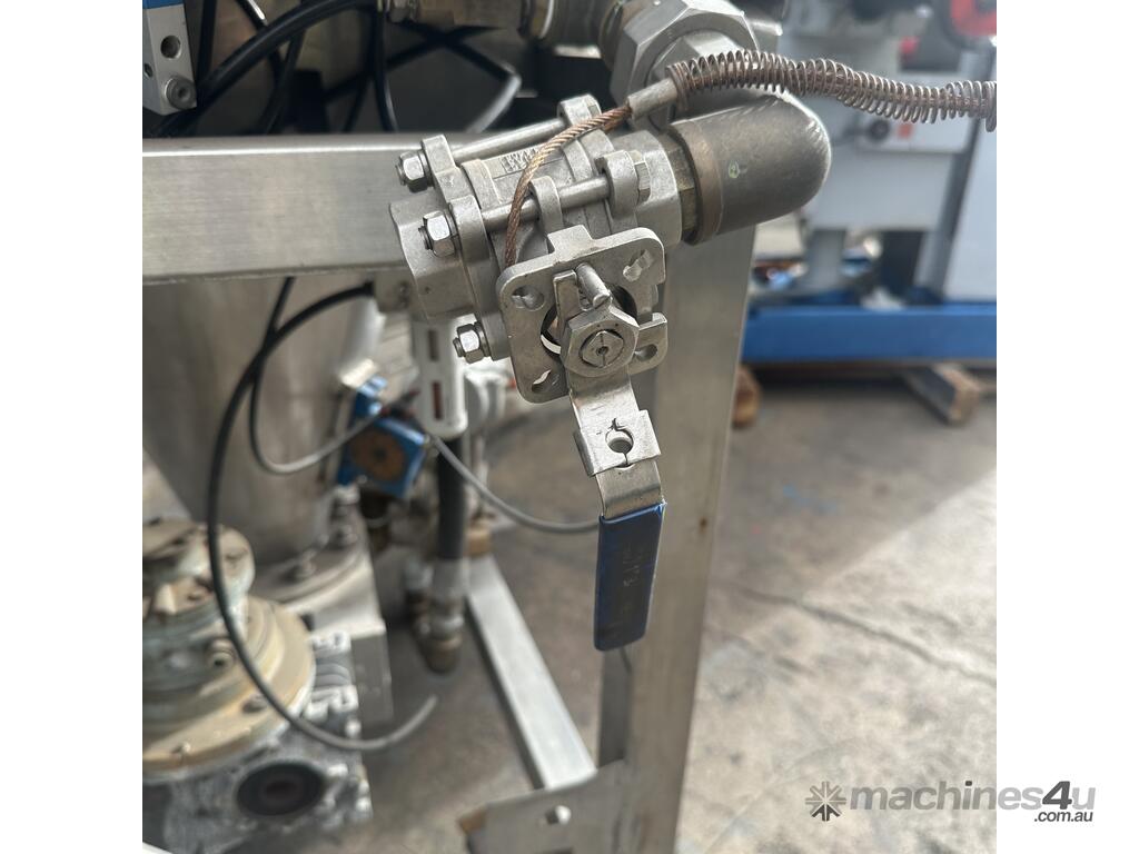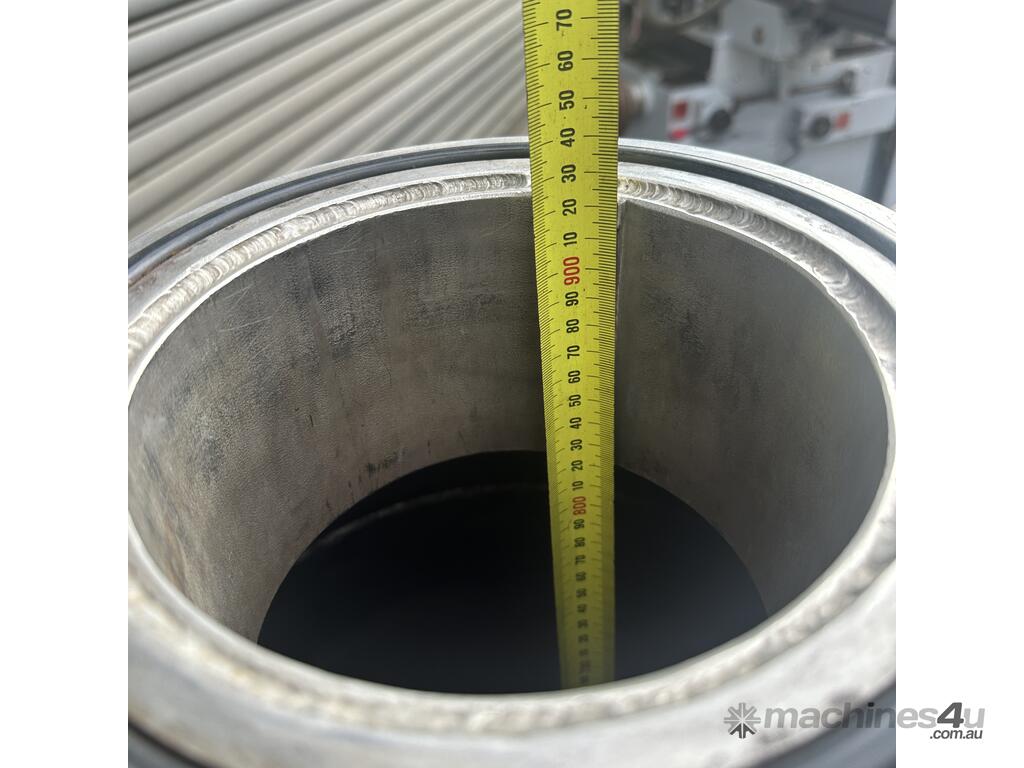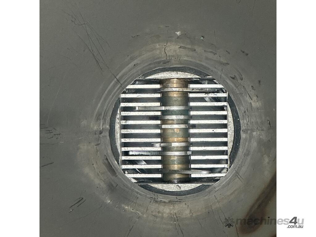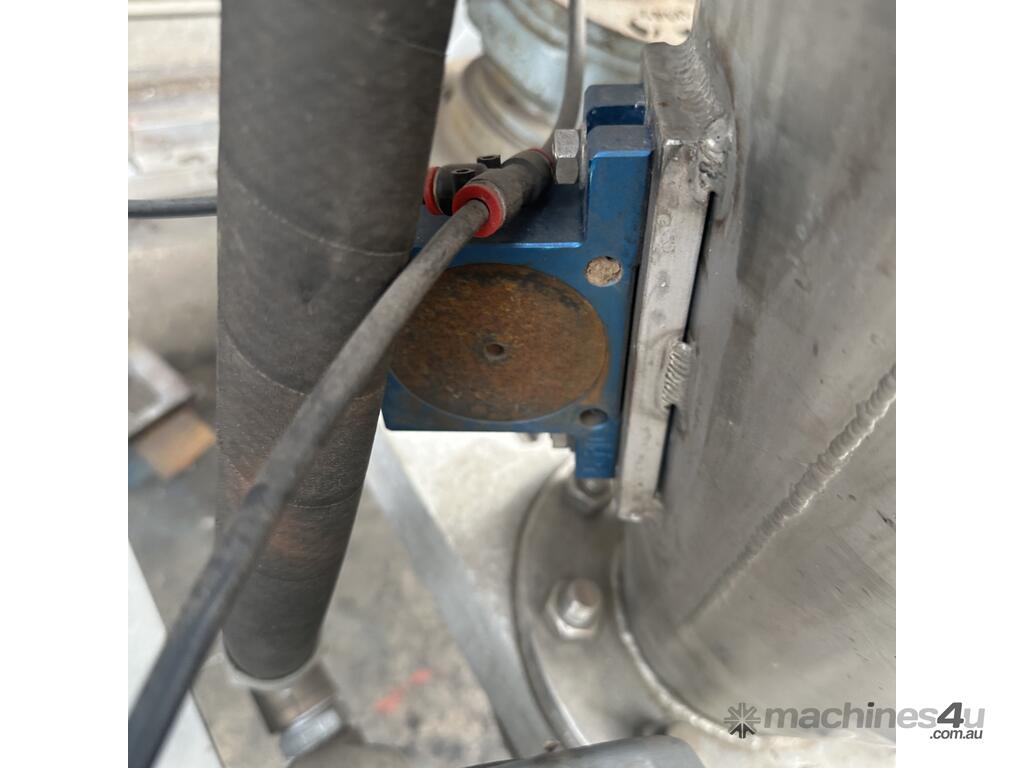 Stainless steel pressure vessel pot hopper with an air motor driven masher and has a air driven vibrator on side of vessel.