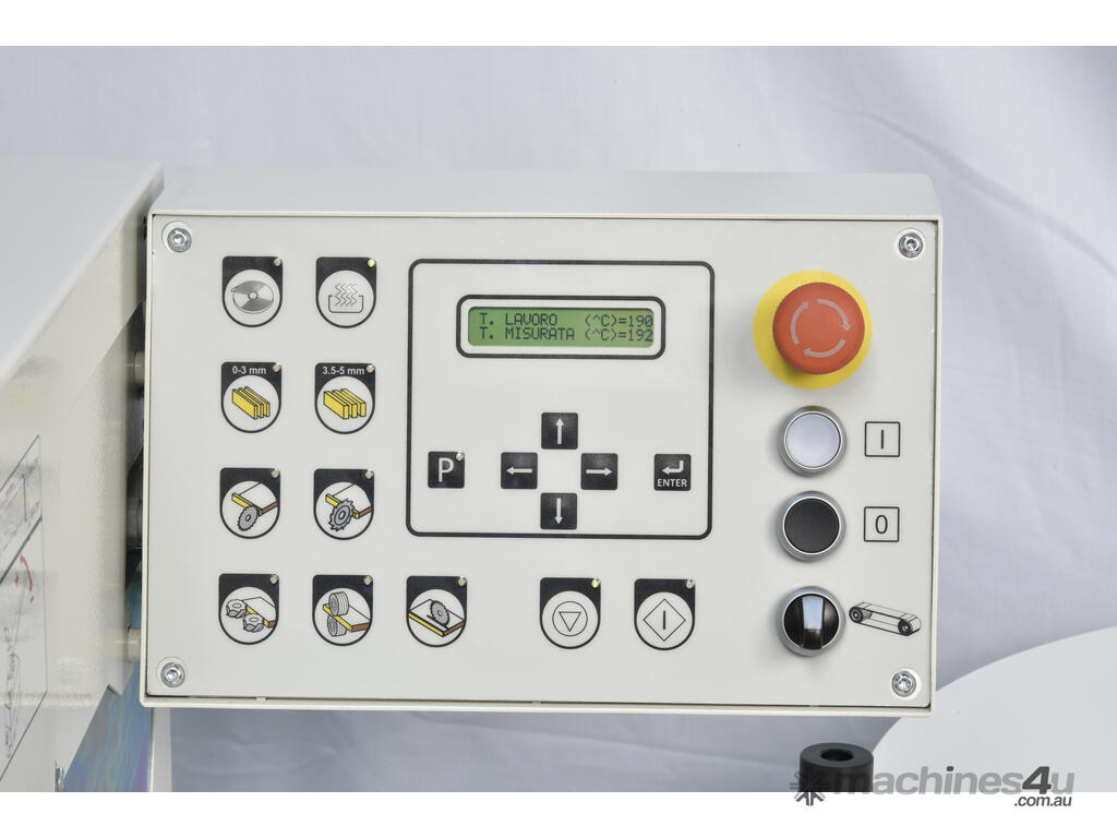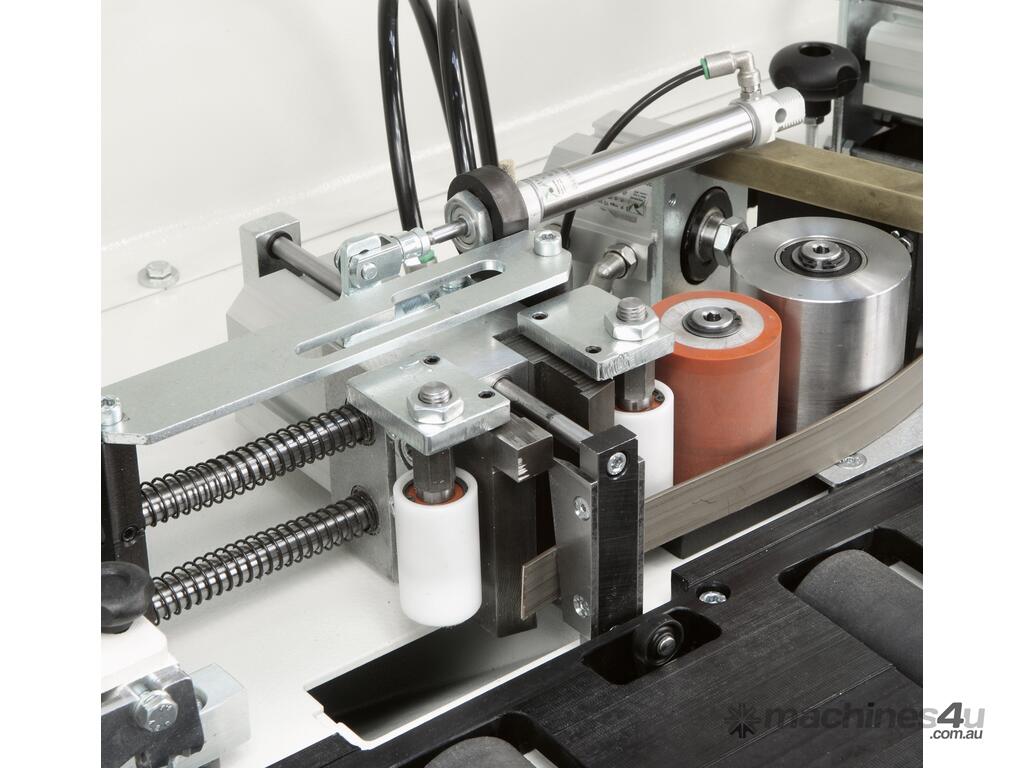 The glue pot temperature is controlled via an electronic control unit ensuring the glue is at optimum temperature ensuring a strong bond. This means no more edges falling off on site! The machine also cuts the ends off flush with a heavy duty guillotine and trims the top and bottom of the panel with either a flat, bevel or radius on material up to 2mm in thickness. All this adds up to saving you hours of hand finishing.