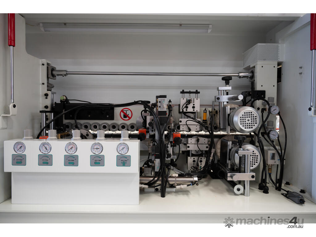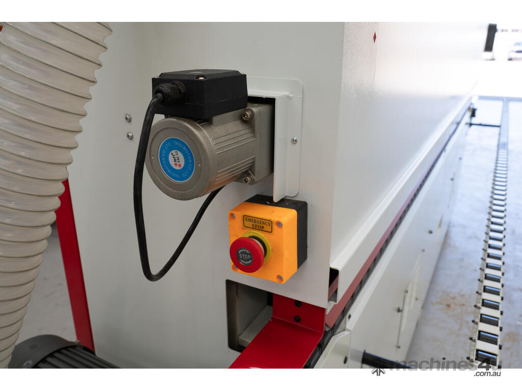 Introducing the WT40PC Edgebander from Wood Tech - a powerhouse of efficiency and precision in edge banding. Engineered with cutting-edge technology, it features pre-milling, corner rounding, profile and flat scraping, all in one sleek machine. With adjustable speeds of 8, 12, and 16 metres per minute, this advanced edgebander is controlled effortlessly through a sophisticated PLC touchscreen, ensuring smooth operation and precise adjustments to panel thickness.
