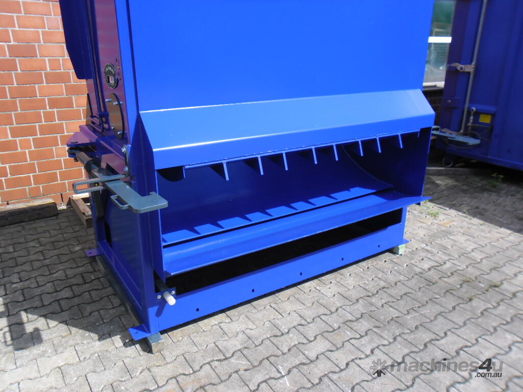 Static “pendulum” compaction system ideal for solid waste such as recyclable cardboard, paper & plastic. Enables bins to be transferred without the weight of the compaction unit.
