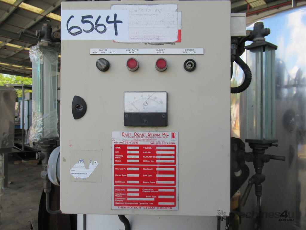 Unit is a natural gas fired vertical water tube steam boiler.