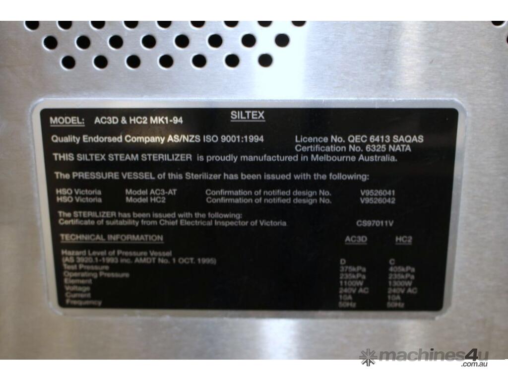 Steam Sterilizer, "Siltex" Model AC3D & HC2 MK1-94, single phase