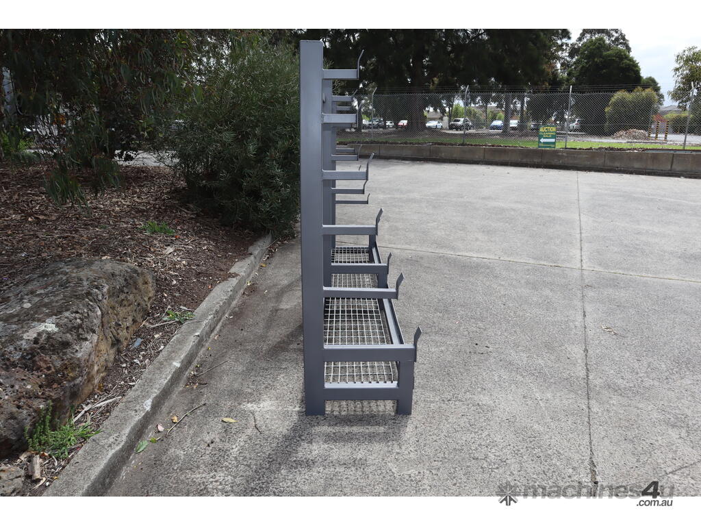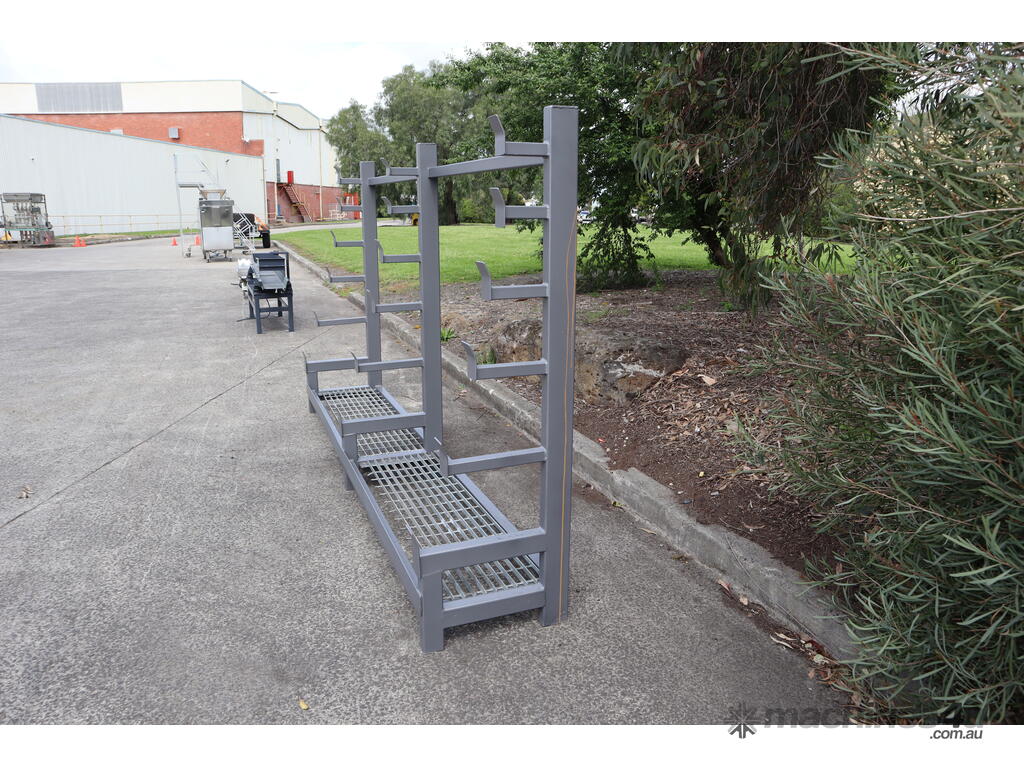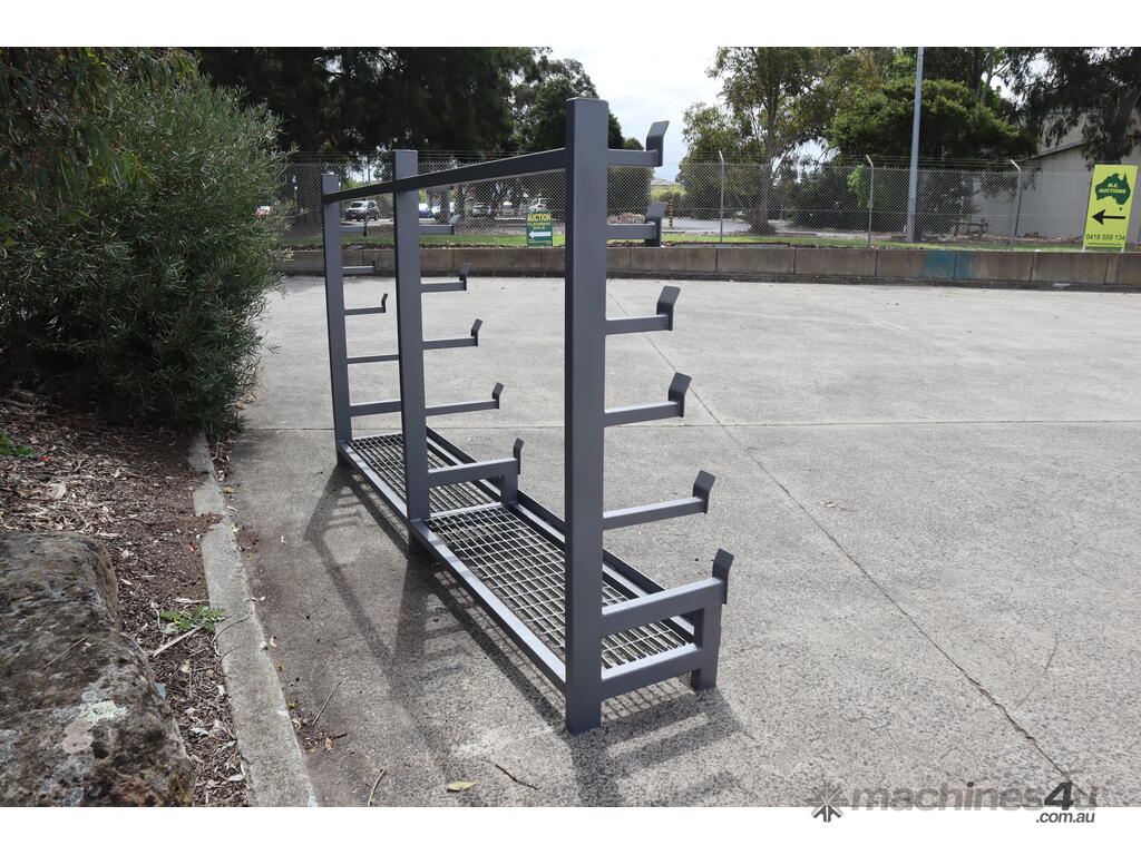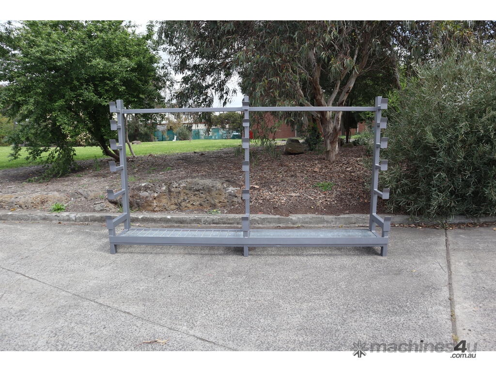 "This steel pipe storage rack may be ideal for workshops, machining shops, or fabrication businesses needing efficient organization for long pipes, bars, or similar materials. It may assist in improving storage and workflow efficiency by providing a sturdy and stable platform for storing elongated materials. Its mesh base allows for drainage and ease of cleaning, while the extended shelf arms with lips may ensure that materials are securely held in place."