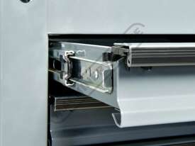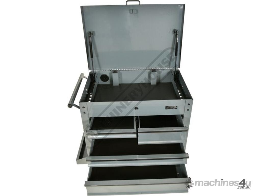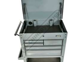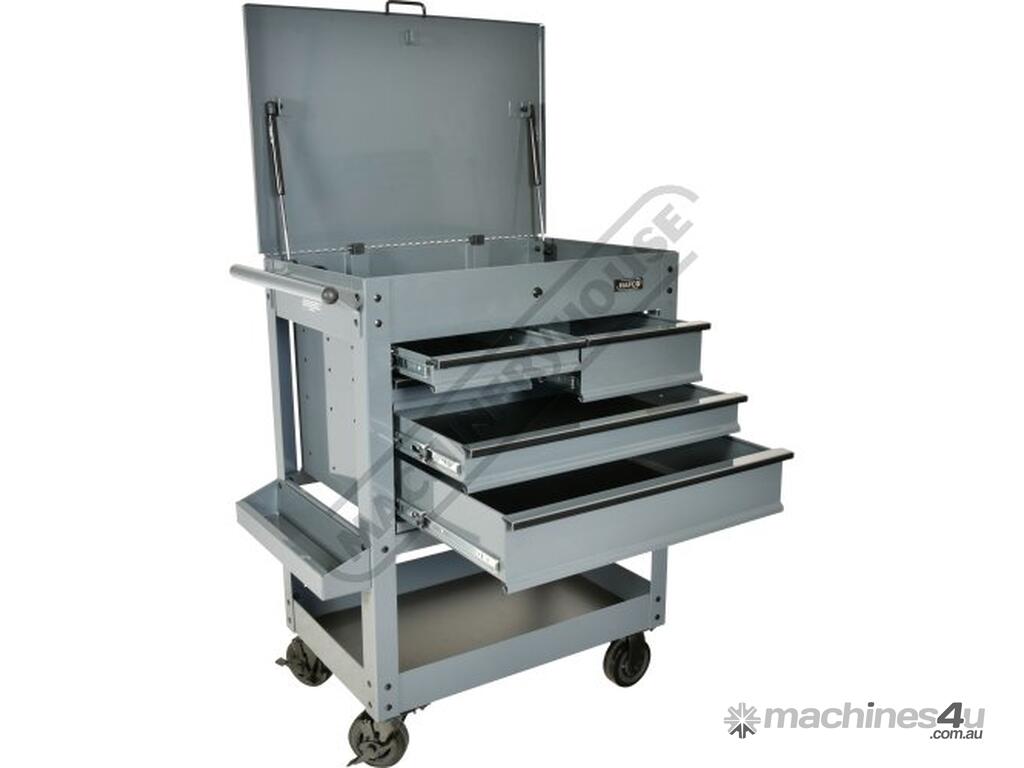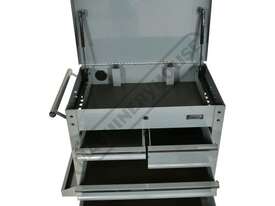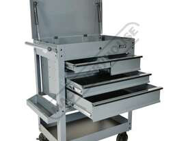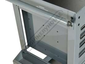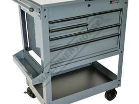 This great tool storage unit also has 2 internal screwdriver bays on both left & right side of the top compartment, key lockable top lid with mechanical drawer lock system that operates with the opening and closing of the lid. There also is plenty of storage below with a huge base shelf to hold larger items. This service tool cart is ideal for any workshop or home garage.