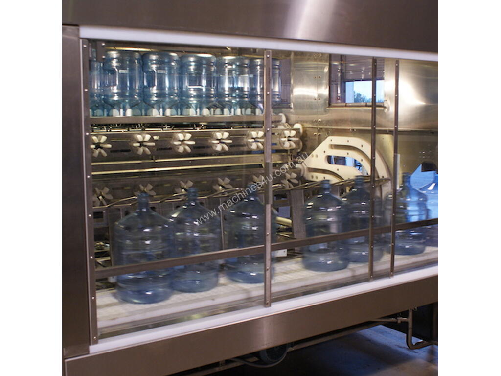 Automatically washes, fills and caps up to 450 & 600 15L bottles per hour depending on the machine