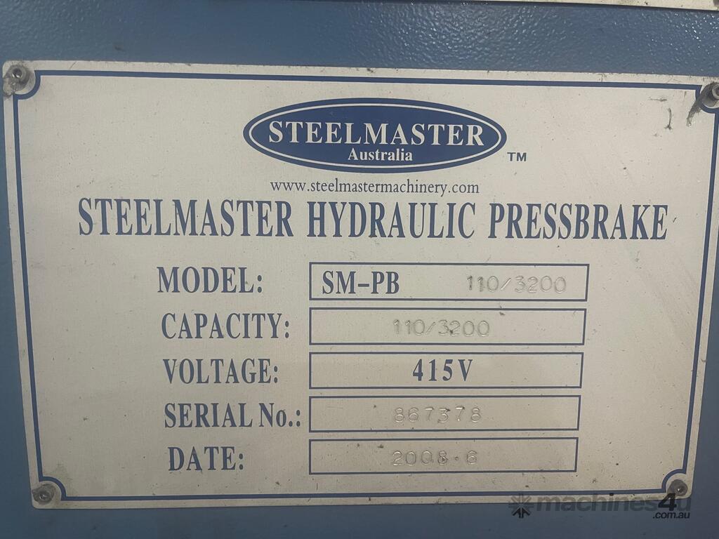 The Steelmaster NC press brake 3.2m X 110 Ton with Icon CNC controller is a high-quality industrial machine designed for precision bending and shaping of metal sheets. This specific model is being offered by CNC-Tech in very good working condition, still actively used in production.