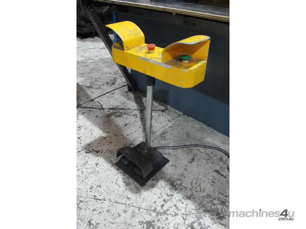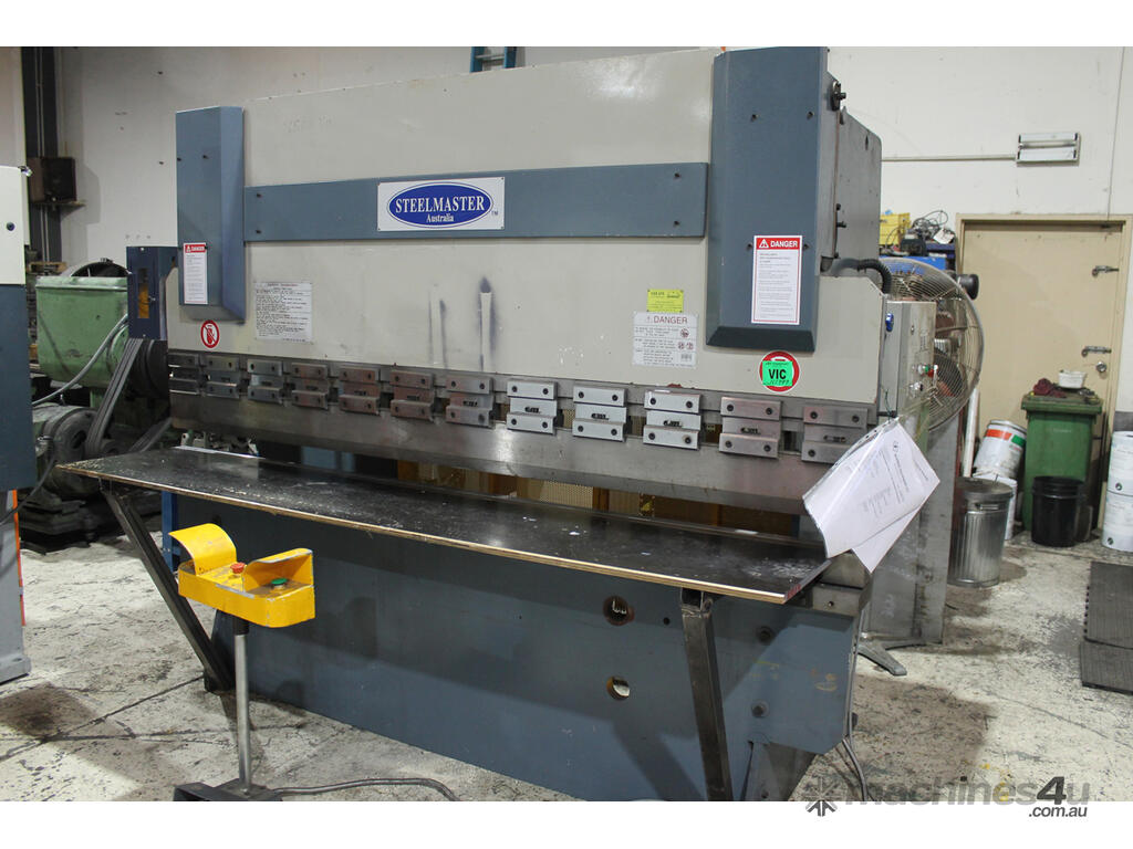 This Steelmaster press brake folder. Includes rear safety guarding, foot pedal, top and bottom tooling as per photos.