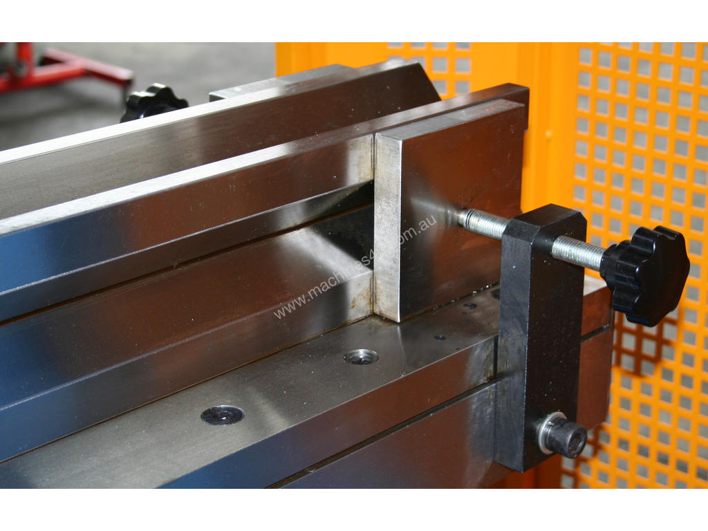 ?CNC ibend programmable precision ball screw back gauge with adjustable height finger stops.