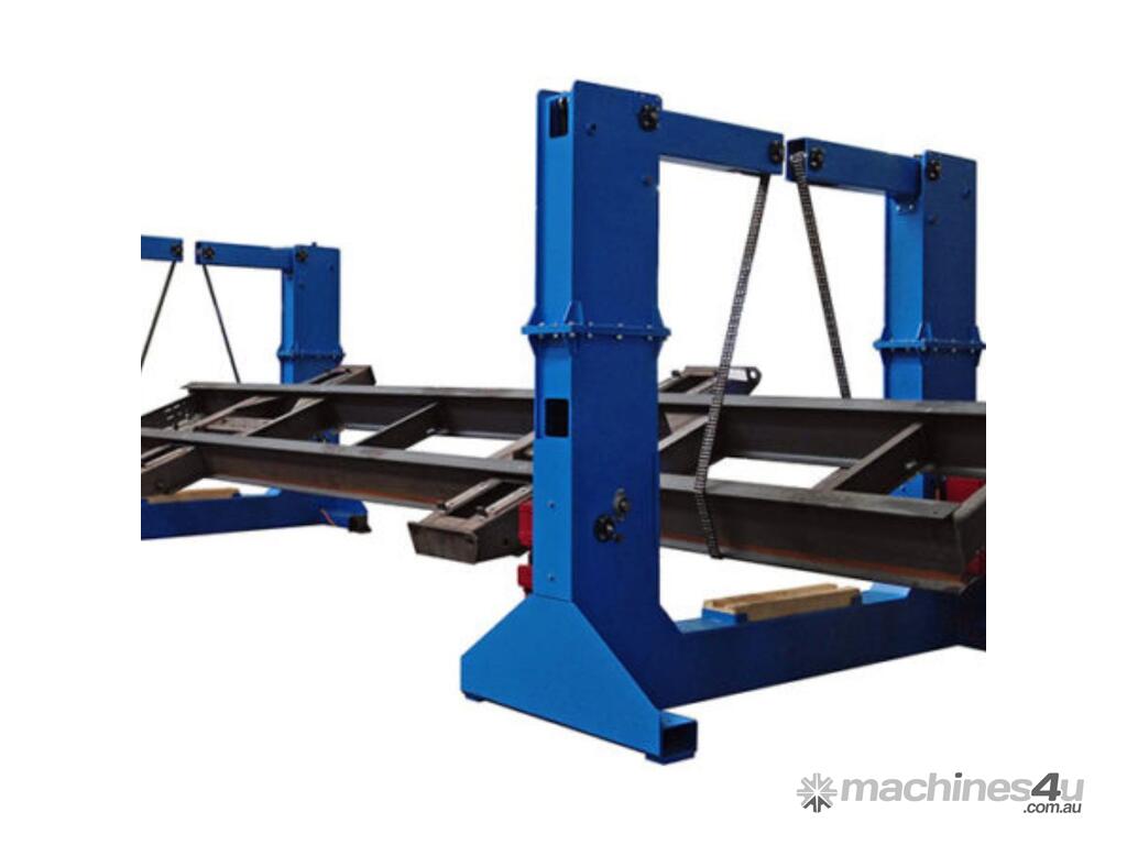 The Stierli-Bieger Beam Rotator is the global benchmark for structural steel positioning. Using heavy-duty, high-strength chains and a synchronised drive system, it can rotate H-beams, RHS, and complex bridge girders with ease. It is a mobile system, meaning you can adjust the distance between the two rotator units to accommodate beams of any length, from short cleats to 24-meter rafters.