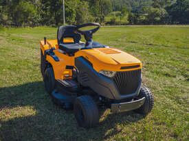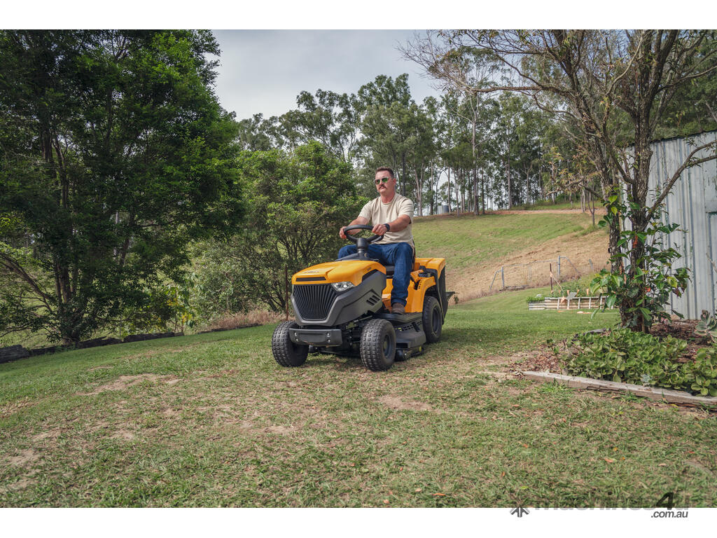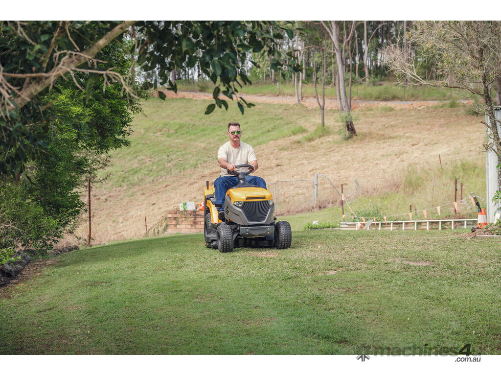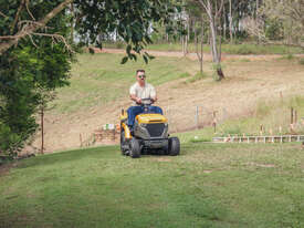 A 98 cm wide cutting deck, for great collection, rear-discharge and mulching (mulch kit optional extra).