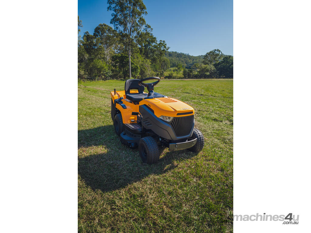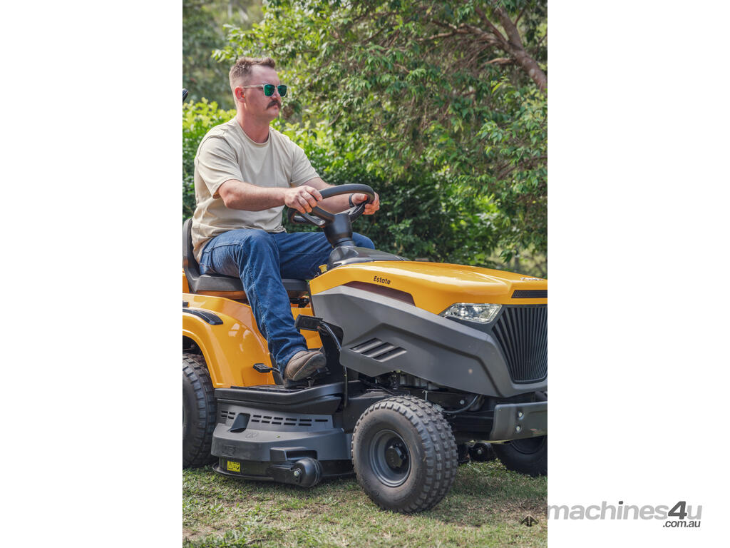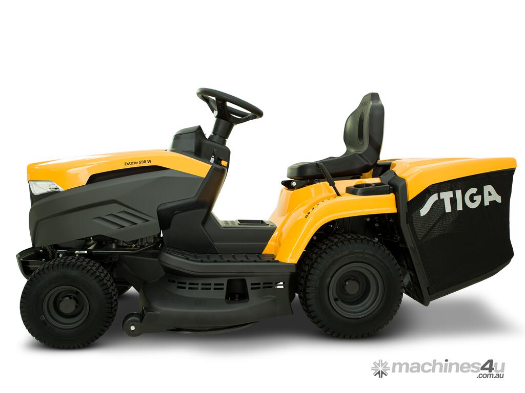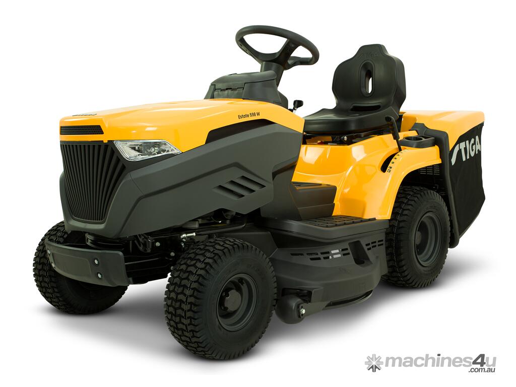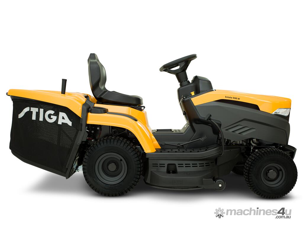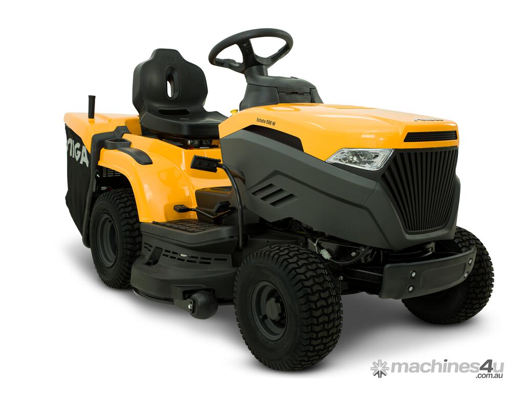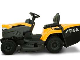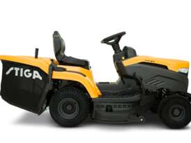 The Stiga Estate ride-on lawn mower is a fast-working 586 cc lawn tractor with a smooth, foot-pedal hydrostatic drive and a large 240-litre grass-collector. Equipped with a new STIGA twin-cylinder engine and a performance-optimizing twin blade deck.