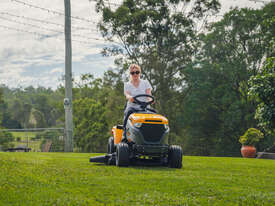 42" (108 cm) Cut reinforced side discharge cutting deck with 3 anti-scalp wheels.