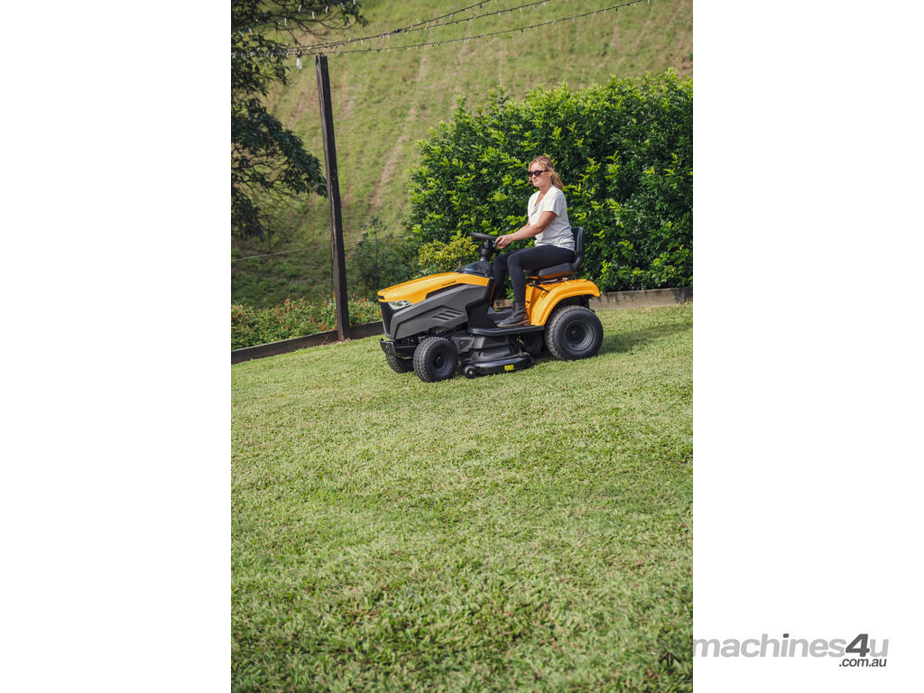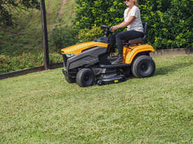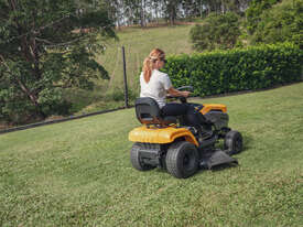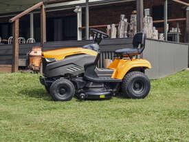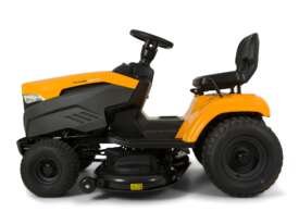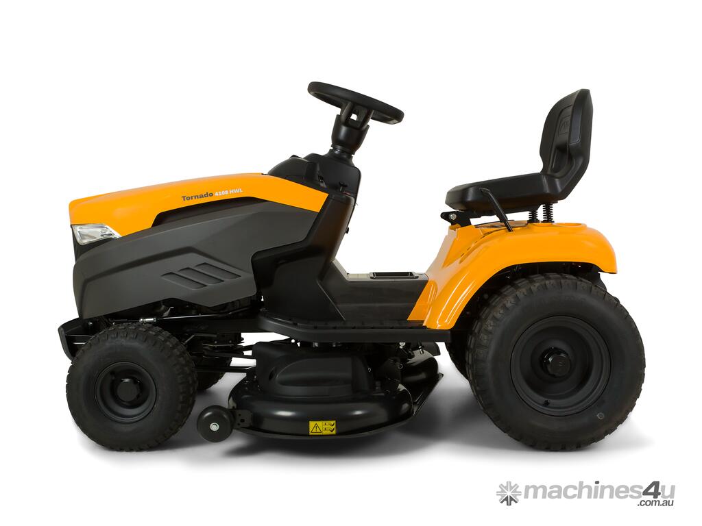 The Stiga Tornado 4108HWS ride-on lawn mower with a powerful, reliable STIGA twin-cylinder engine and a productive 108 cm (42") twin-blade cutter-deck. Equipped with a large fuel tank. This ride-on mower has a cast iron front axle for long-lasting resistance and durability, a 108 cm reinforced cutting deck with two blades and three anti-scalp wheels to mow any lawn perfectly, with total control and safety. The Tornado 4108HWS has 15" front x 20" rear wheels for maximum grip, powerful headlights ensure visibility in all conditions.