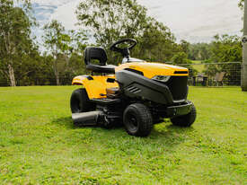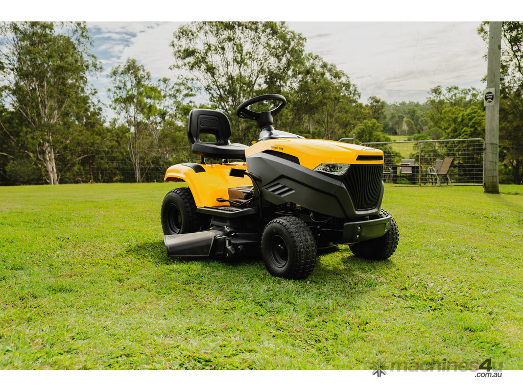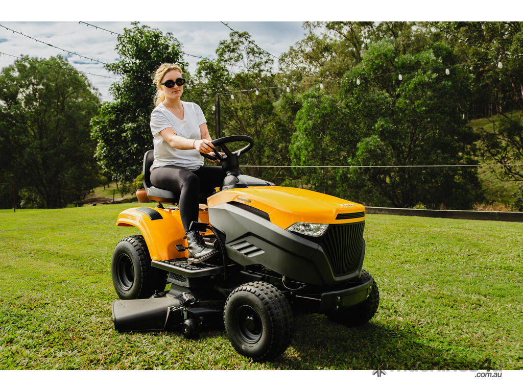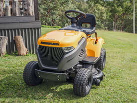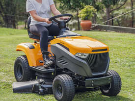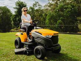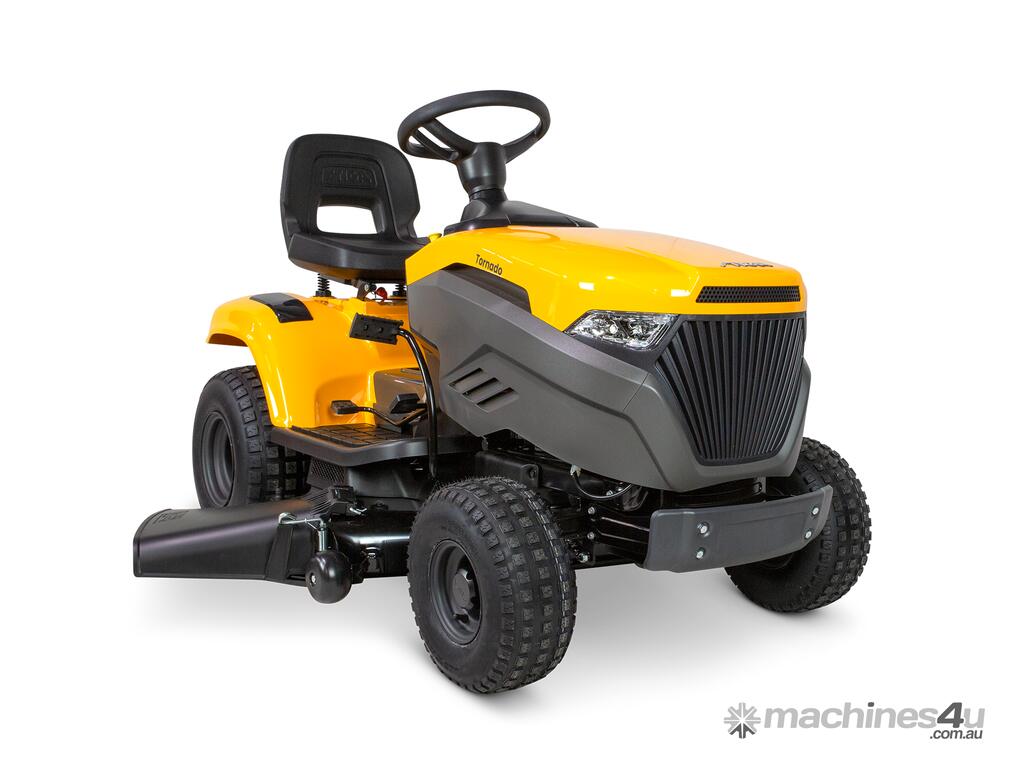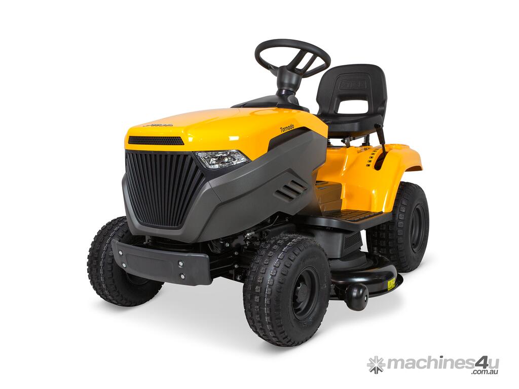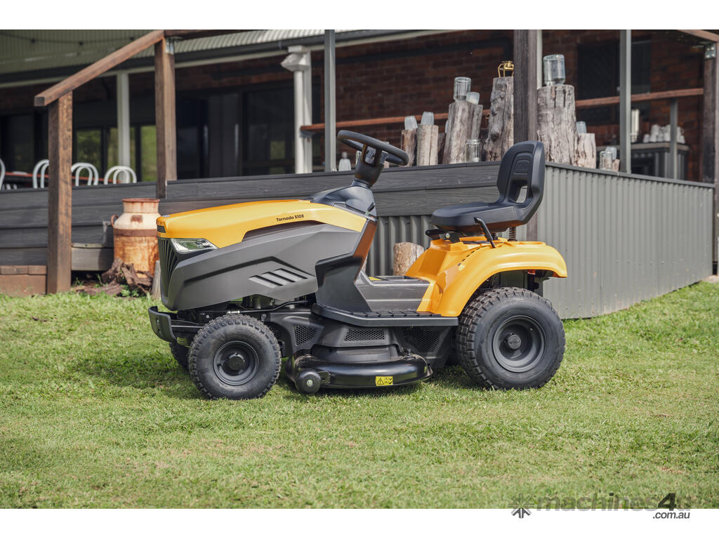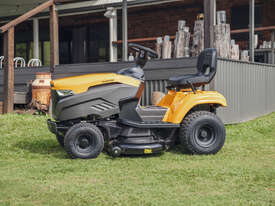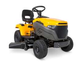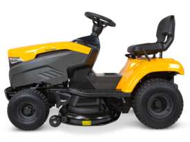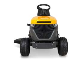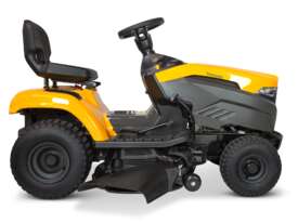 The Stiga Tornado 5108 ride-on lawn mower is a compact lawn tractor with a powerful STIGA single-cylinder engine and a productive 108 cm (42") twin-blade cutter-deck. Suitable for gardens up to 6000 m2. This small, powerful and fast-working lawn tractor, is designed to perform side discharge or mulching cut on lawns up to 6000 m2 and ensuring incredible flexibility of use. The Tornado 5108 is equipped with a STIGA ST 500 single-cylinder engine with 452 cc displacement and impressive power output. The foot pedal hydrostatic drive on the Tornado 5108 gives infinitely variable ground-speed control, which in turn makes it easier - and safer - to mow and tow around trees, ornaments and other garden obstacles. Highly productive over large areas, the Tornado 5108 comes with a sizeable 108cm double-bladed cutter-deck that can be height-adjusted through seven positions (25 mm -80 mm); and which is equipped with anti-scalp wheels for turf protection when maneuvering on sloping or rolling ground. A washing link facilitates the hassle-free removal of corrosive, performance-limiting debris from the underside of the deck; while an adjustable seat works with a soft-grip steering wheel and a cup holder to confer the very best in driver comfort. Other attractive features include LED headlights that provide great visibility at any time of the day; and a robust front-bumper that limits the effect of any accidental impact.