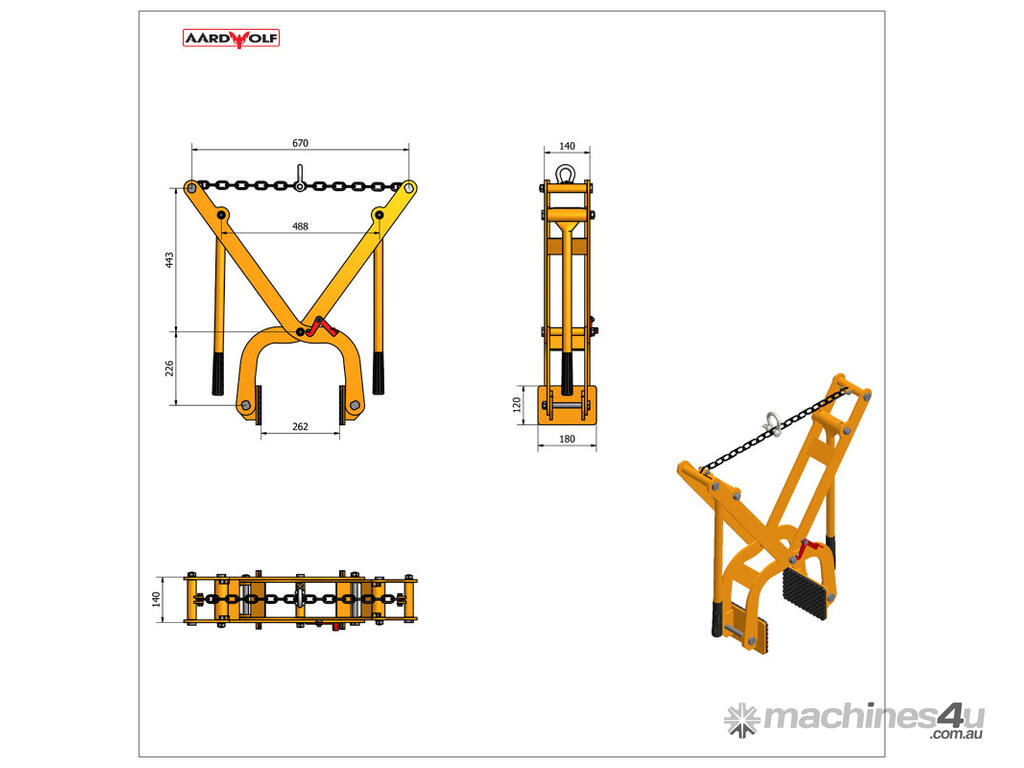 The Aardwolf Stone Kerb Clamp (ASKC200) is a versatile, two-man lifting tool designed for handling curb stones, concrete, and granite kerbs, making it ideal for road construction and infrastructure projects.