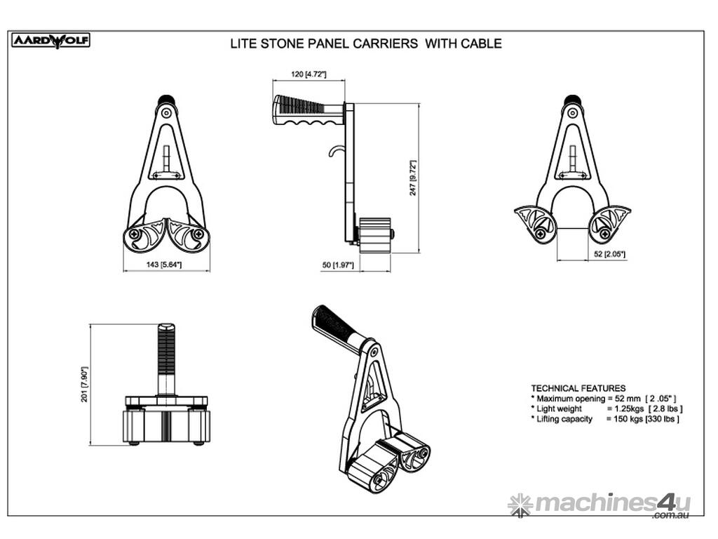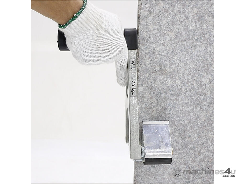 This device significantly reduces stress and the potential injuries to the fingers, wrists and back. It also reduces physical fatigue. The Stone Panel Carrier with Cable works by clamping onto the edge of panels, creating a sturdy temporary handle for the workers who are carrying them. It allows tradespeople to lift and move panels with a straight back, thereby avoiding back injuries.