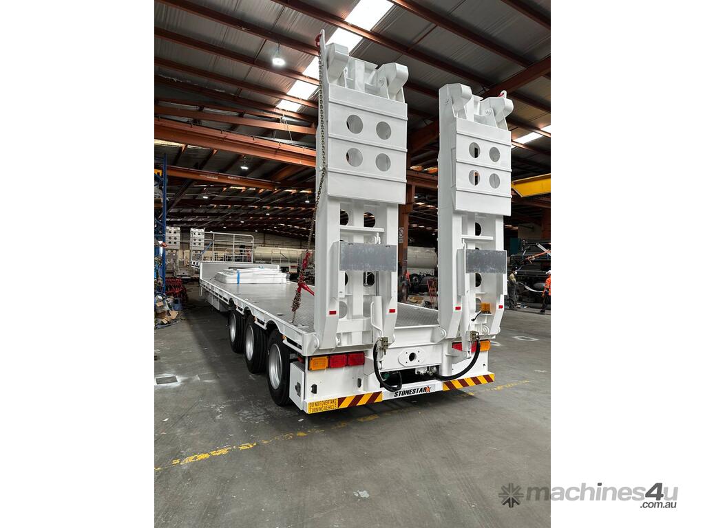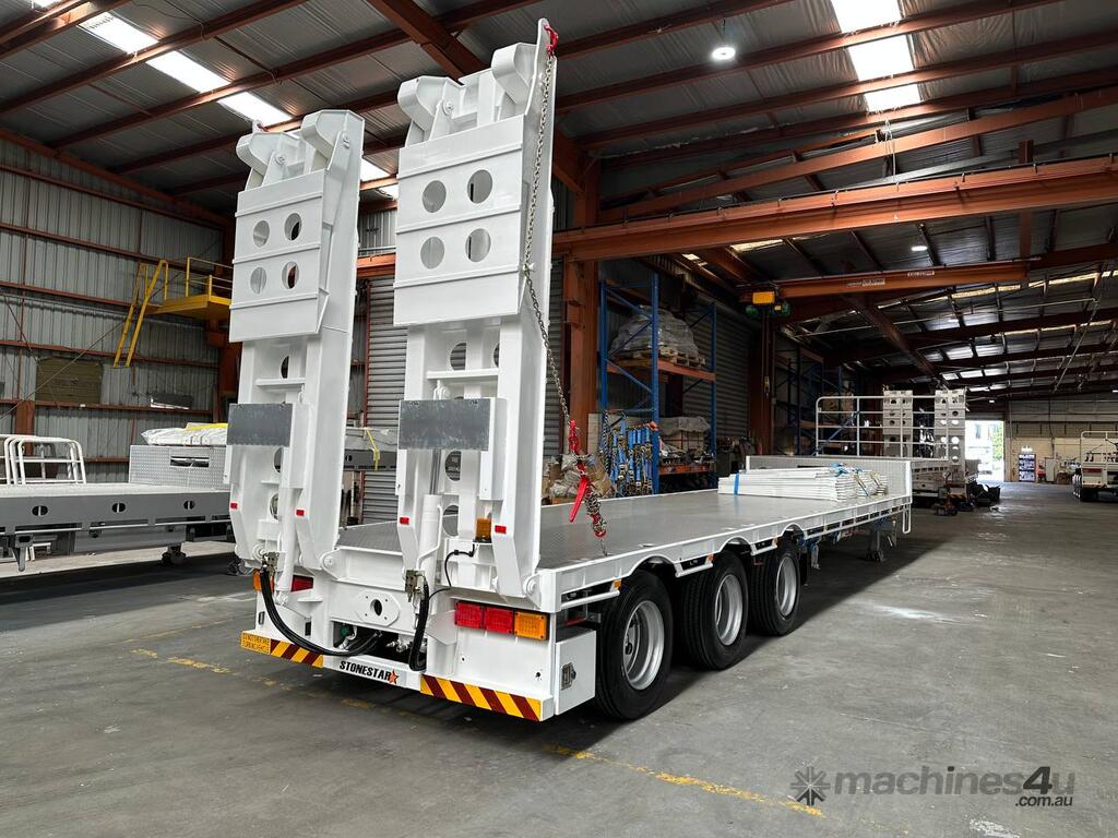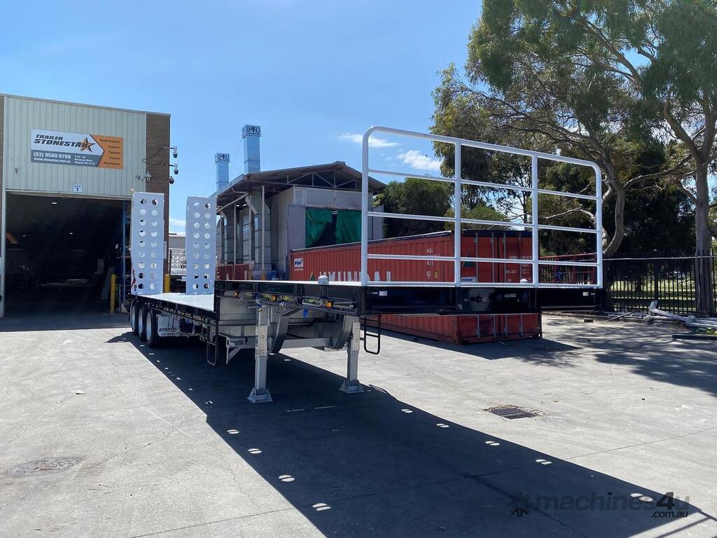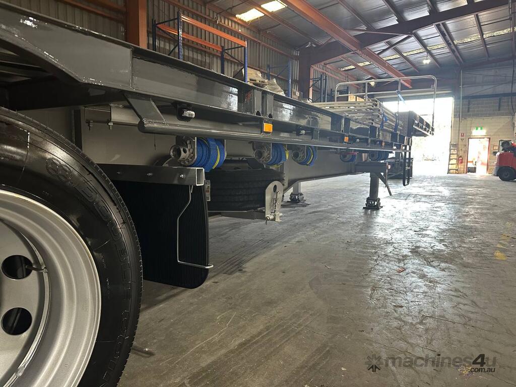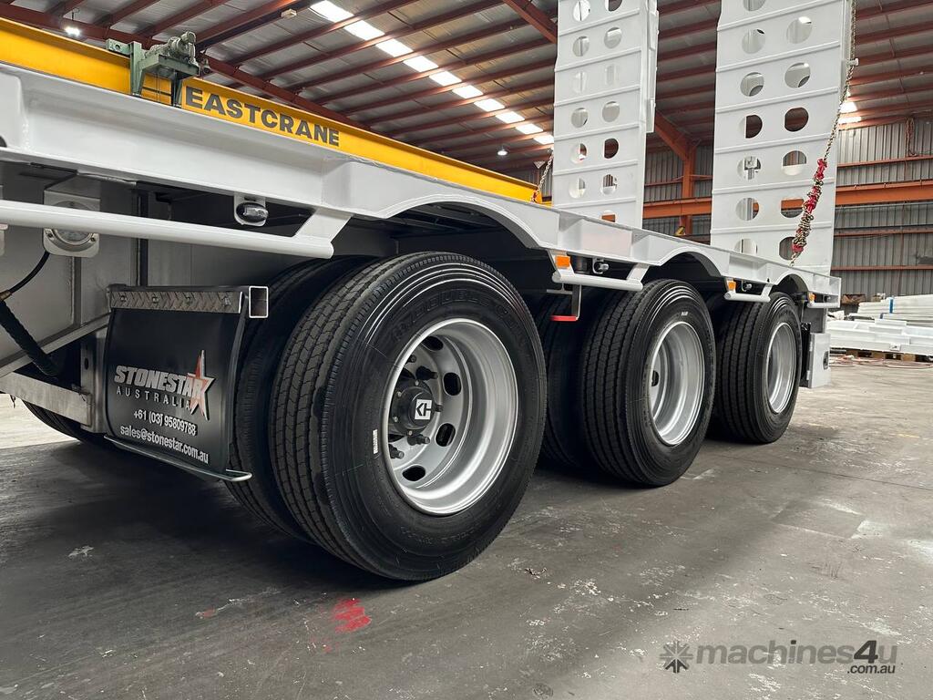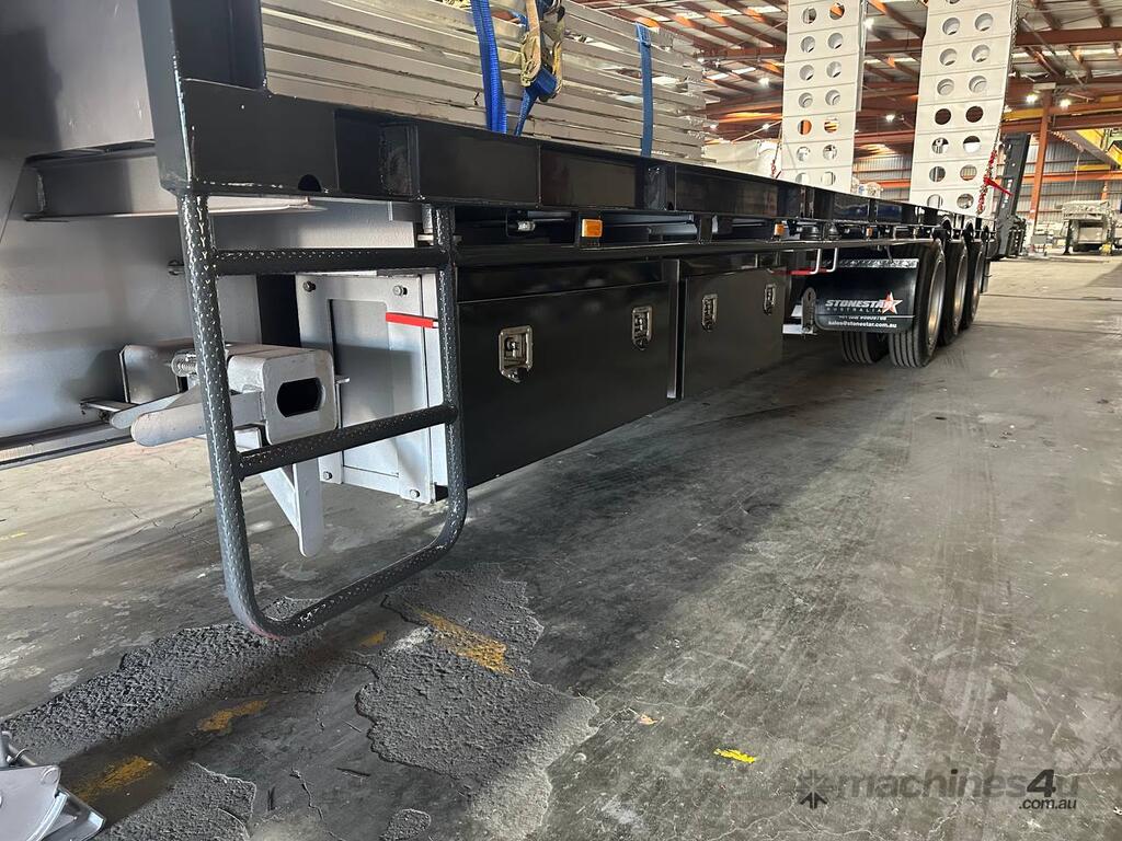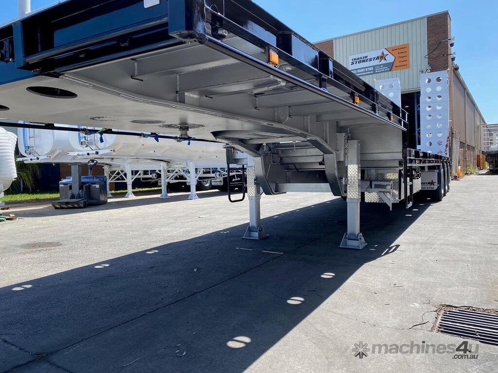 Introducing the brand new Stonestar Drop Deck 45ft Trailer, a high-performance solution engineered for your heavy-duty transport needs. This trailer is built with K Hitch heavy-duty air bag suspension and K Hitch axles, providing a smooth and stable ride even under challenging conditions. Equipped with EBS brakes, a Jost king pin, and high-speed landing legs, it ensures safe and efficient operation. The trailer features high-standard steelwork, mudflaps, and 3-way container pins, making it a versatile choice for various hauling tasks.